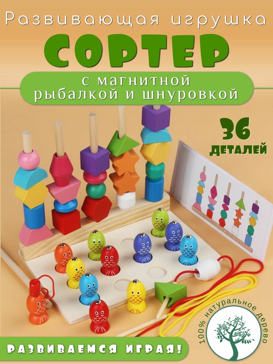 Купить Сортер для малышей деревянный/ Развивающая игрушка по Монтессори/ Бизиборд "Весёлая рыбалка"