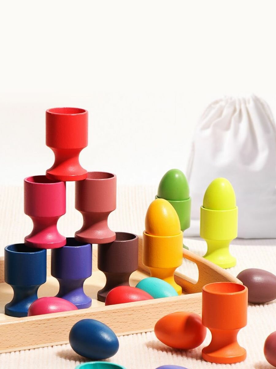 Купить Сортер для малышей деревянный "Яйца в стаканчиках"/ Развивающая игрушка по Монтессори