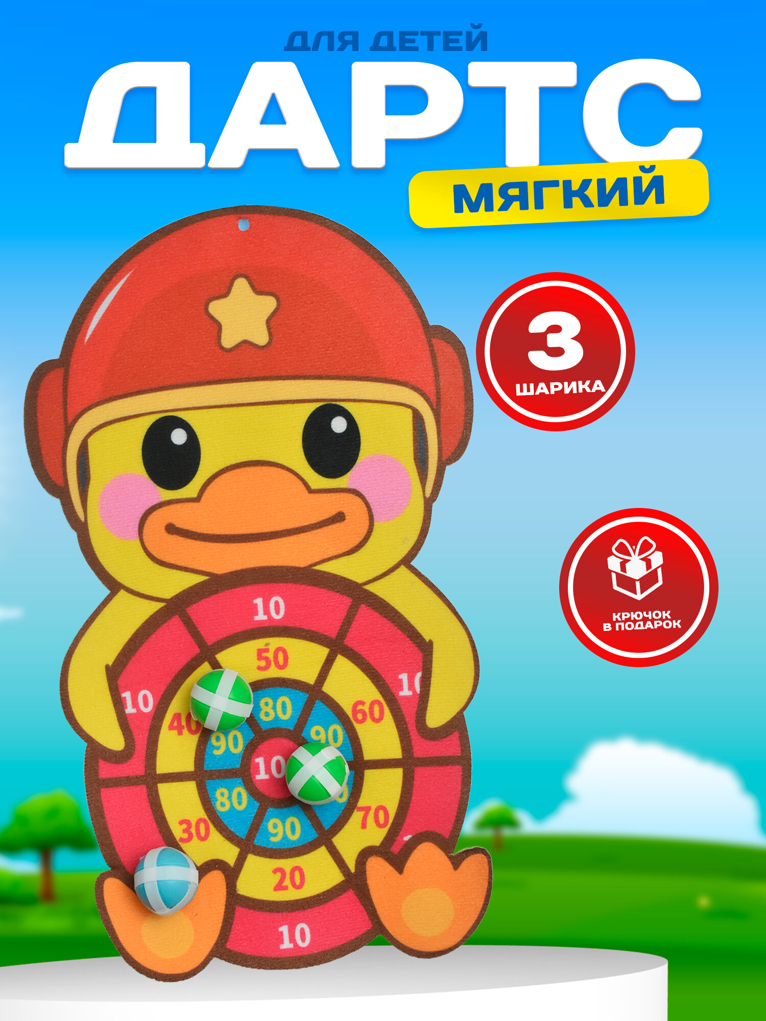 Дартс IBRICO "Утенок", мягкий, на липучках, 3 шарика в комплекте интересное: