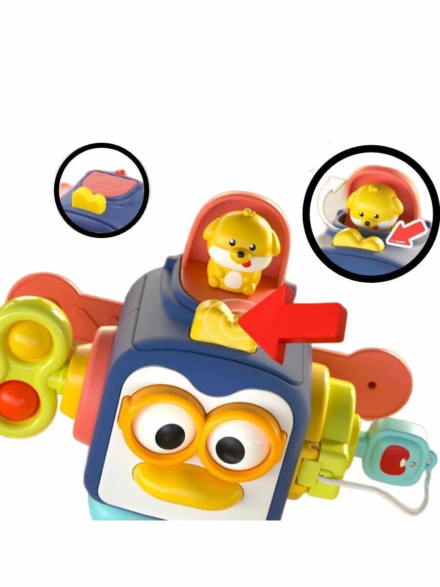 Развивающая игрушка бизикубик Пингвин бизиборд дорожный для малышей с погремушкой интересное: