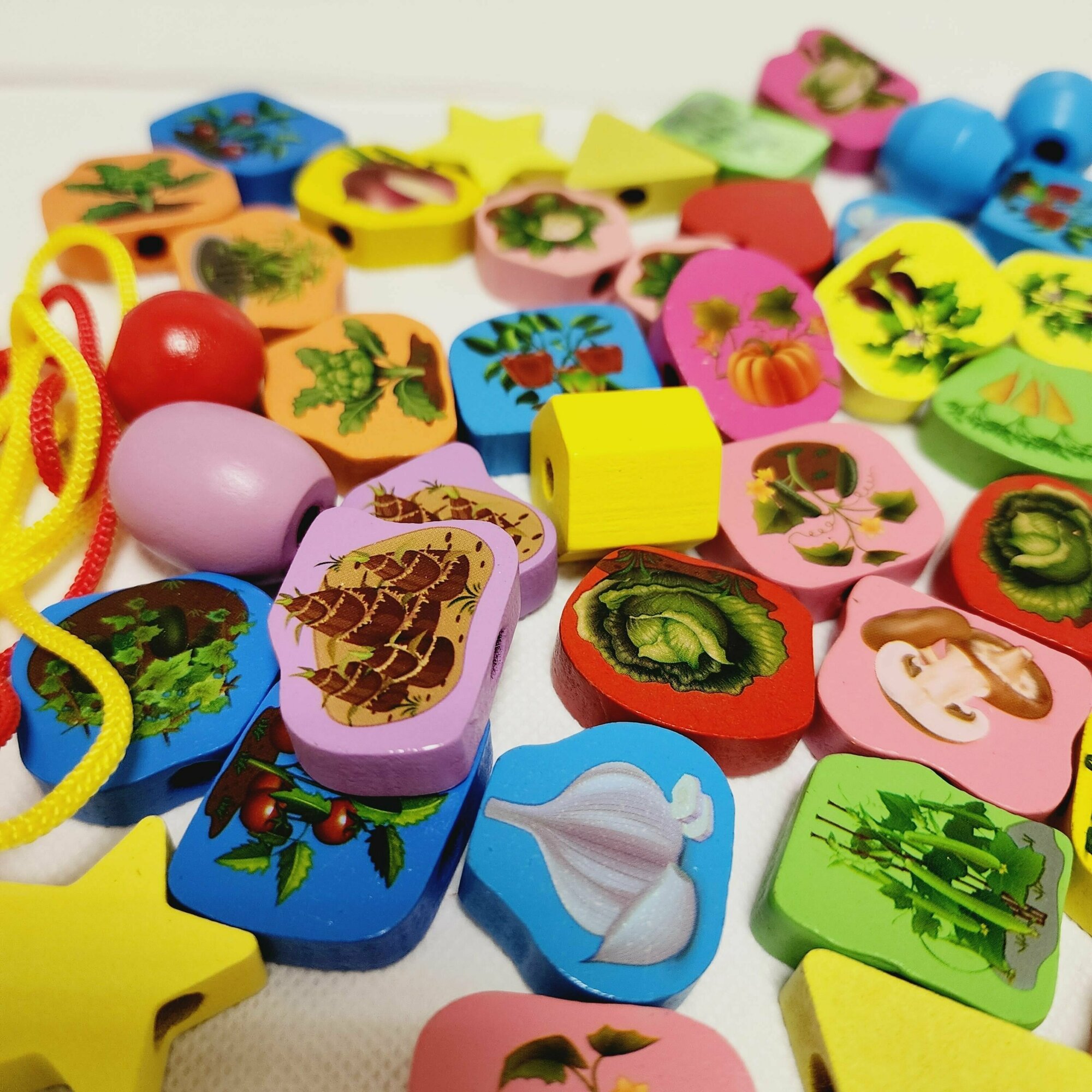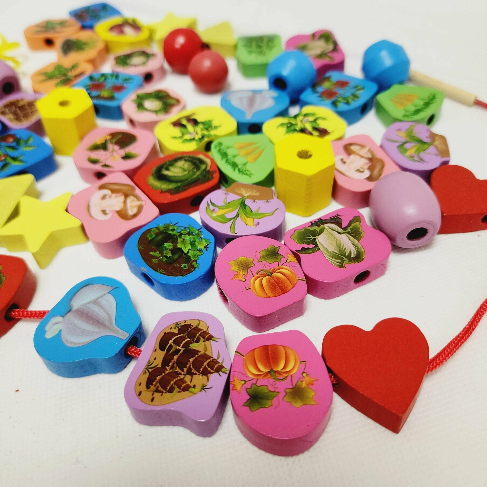 Купить Шнуровка для малышей деревянная Овощи тренировка мелкой моторики/развивающая игрушка