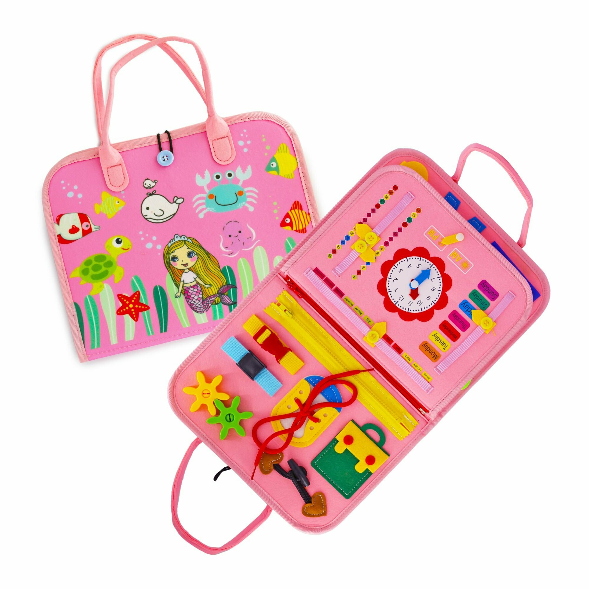 Купить Детская развивающая игрушка в дорогу Монтессори бизиборд в сумке "Русалка", 25 обучающий игр