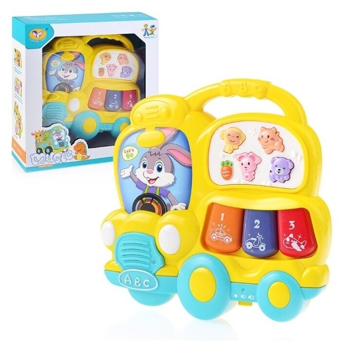 Купить Музыкальное детское пианино "Веселый Автобус" для малышей с подсветкой, 25 звуков и мелодий, 14 х 2 х 14,5 см