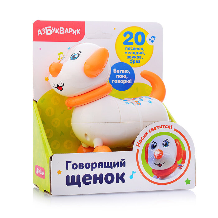 Интерактивная развивающая игрушка Азбукварик Говорящий щенок, белый интересное: