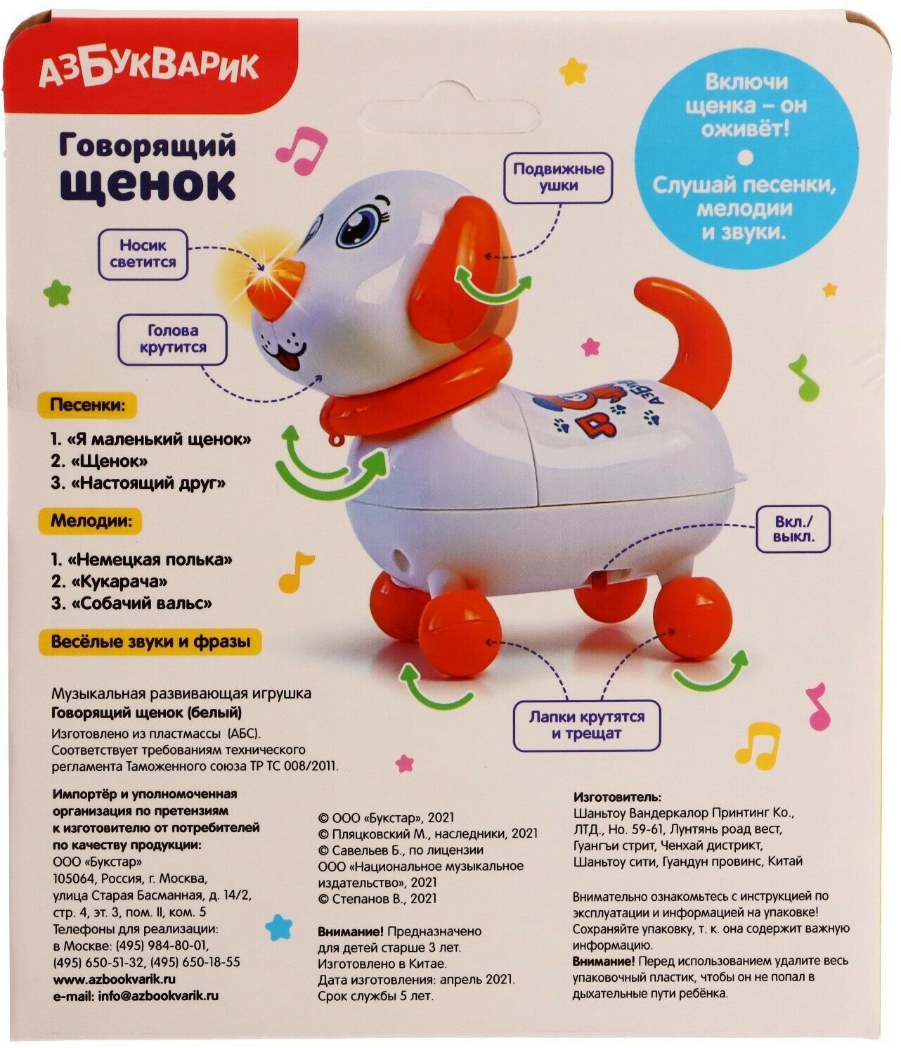 Интерактивная развивающая игрушка Азбукварик Говорящий щенок, белый