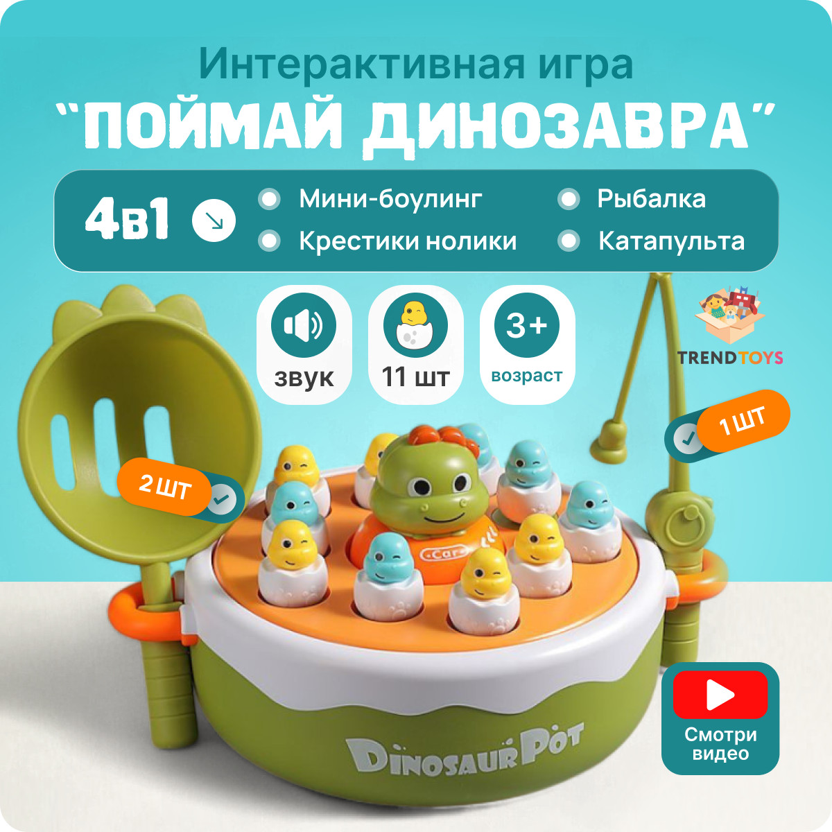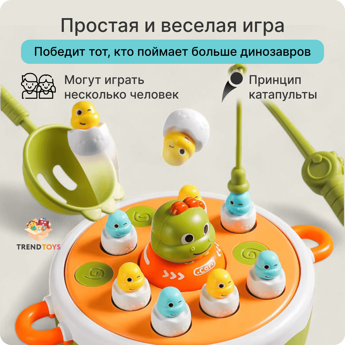 Детская интерактивная музыкальная игрушка TrendToys Магнитная рыбалка Поймай динозаврика 4 в 1 интересное: