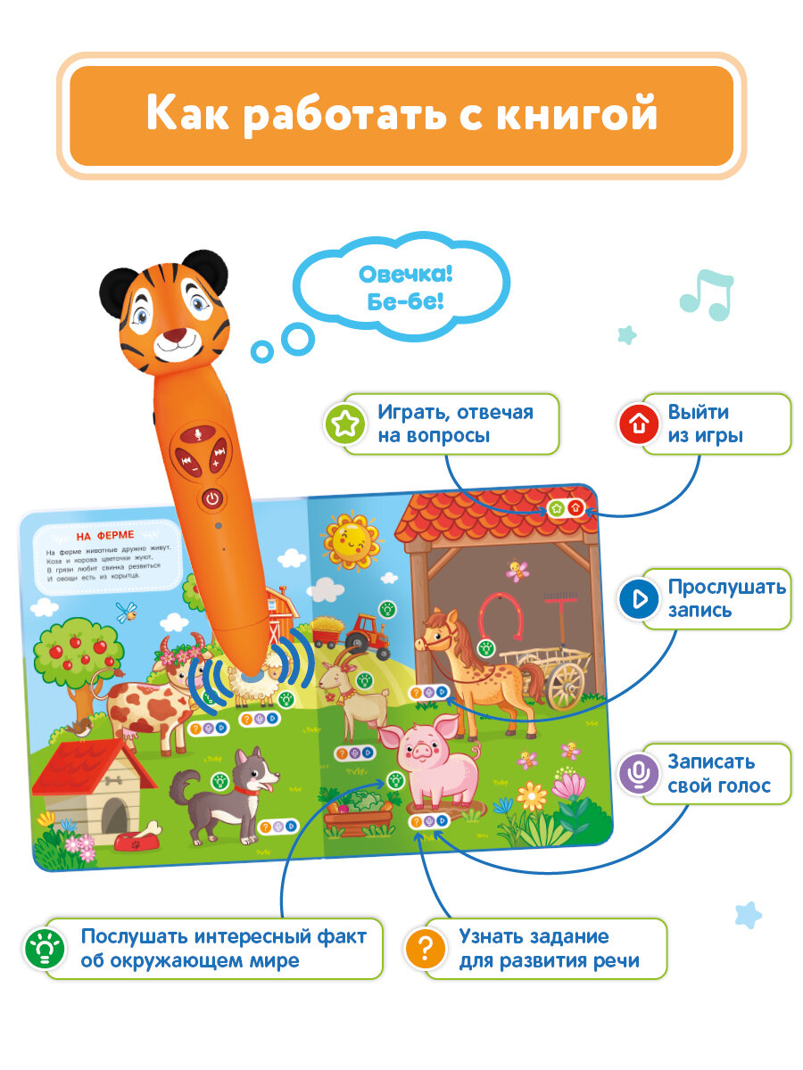 СохранитьРазвивающая игрушка для детей: логопедический набор Тигренок Рыки с книгой "Животные", BertToys интересное: