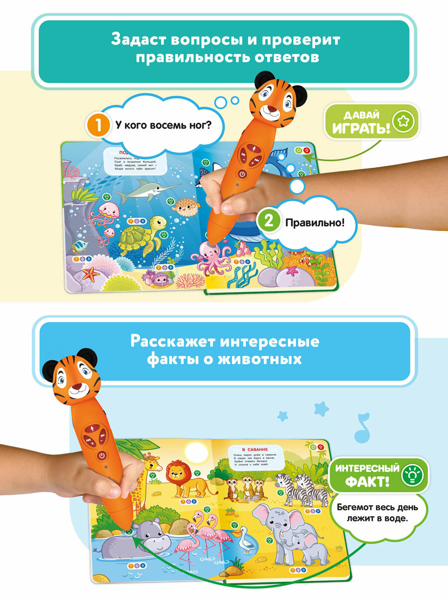 Интерактивная книга для детей "Цифры". Взаимодействует с панда Тичи, собачка Буля, тигренок Рыки