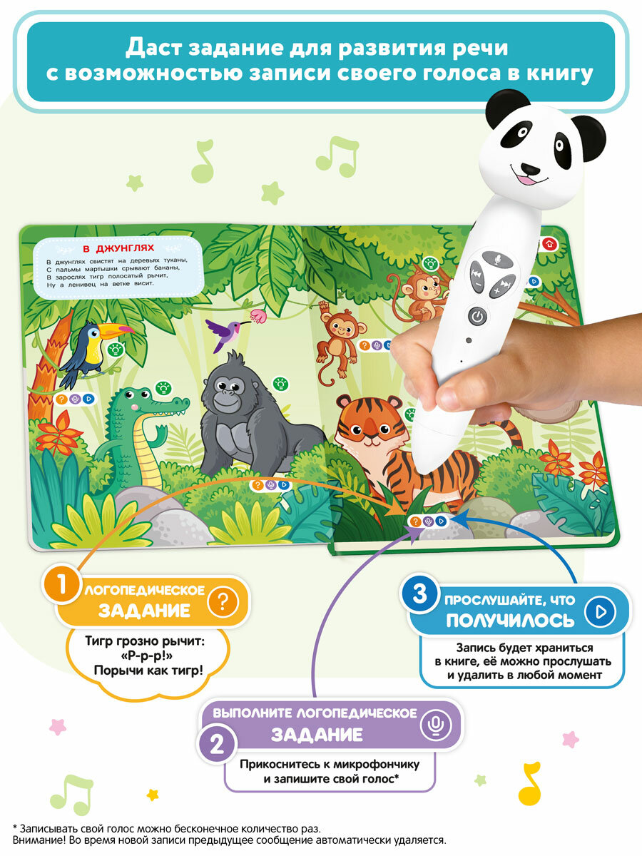 Развивающая игрушка для детей: логопедический набор Панда Тичи с книгой "Животные", BertToys