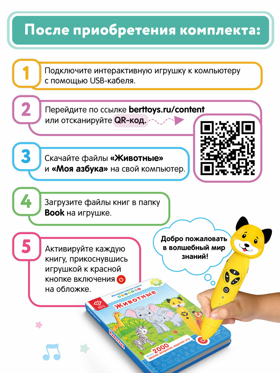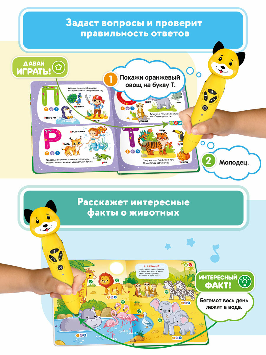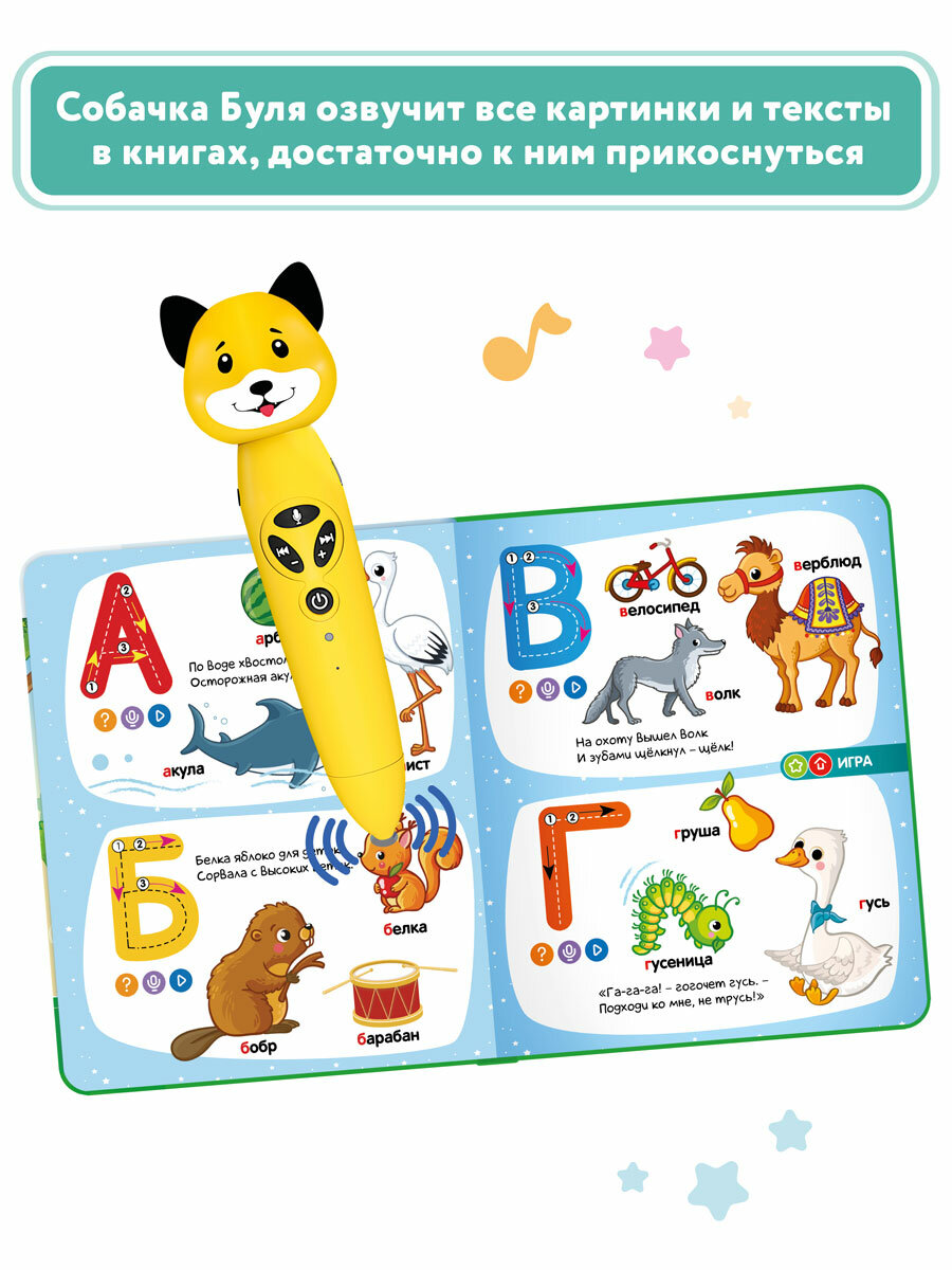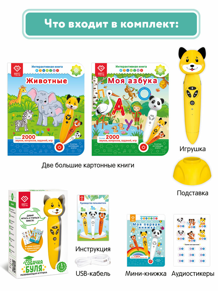 СохранитьРазвивающая игрушка для детей: логопедический набор Собачка Буля с двумя книгами "Моя азбука" и "Животные", BertToys интересное: