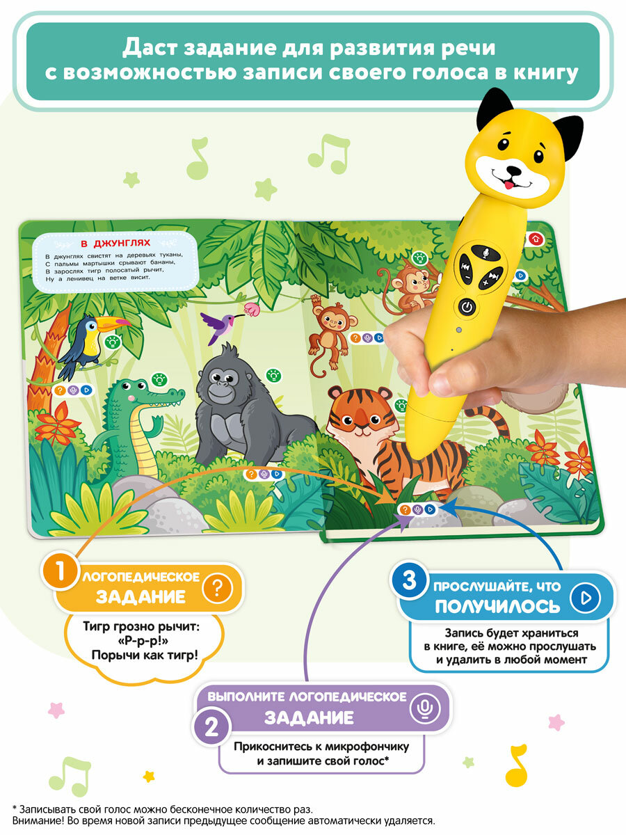 Развивающая игрушка для детей: логопедический набор Тигренок Рыки с книгой "Животные", BertToys