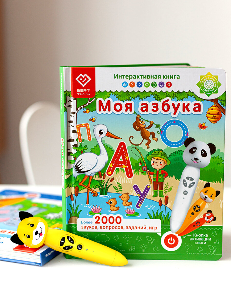 Развивающая игрушка для детей: логопедический набор Панда Тичи с двумя книгами "Моя азбука" и "Животные", BertToys