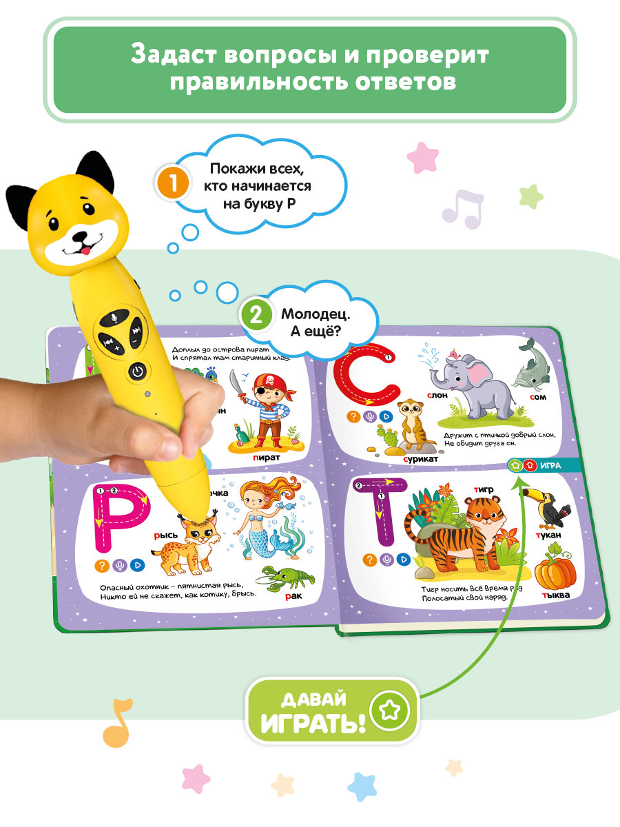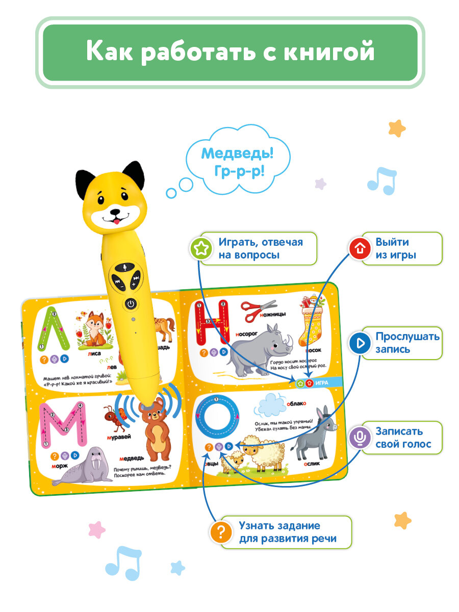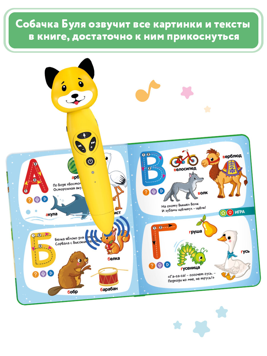 СохранитьРазвивающая игрушка для детей: логопедический набор Собачка Буля с книгой "Моя азбука", BertToys интересное: