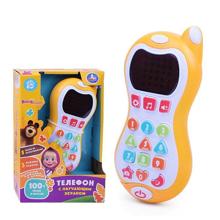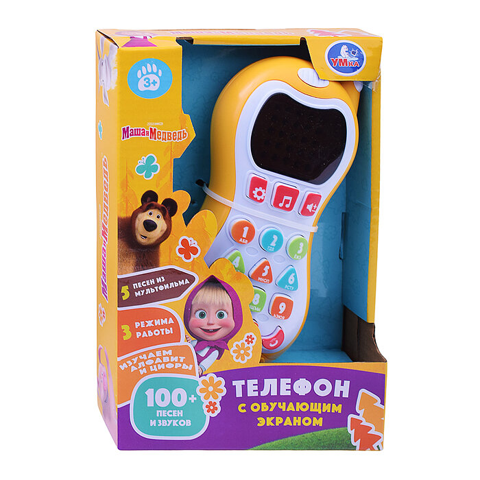 Телефон обучающий УМка Маша и Медведь с LED экраном, 100 звуков, песен, стихов интересное: