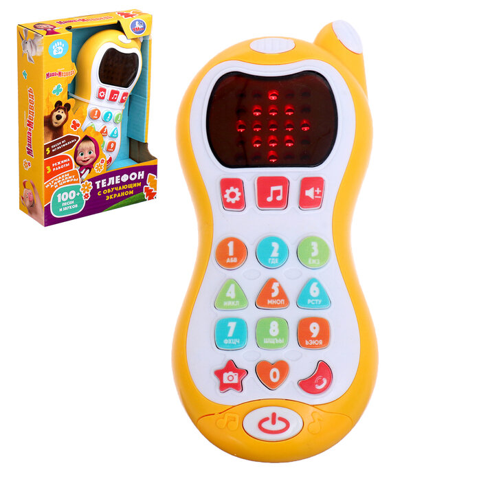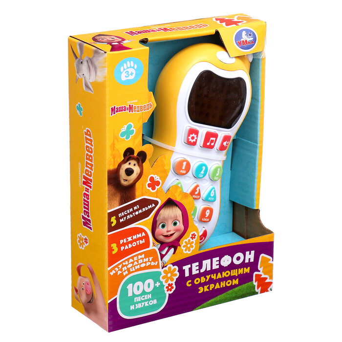 Купить Телефон обучающий УМка Маша и Медведь с LED экраном, 100 звуков, песен, стихов