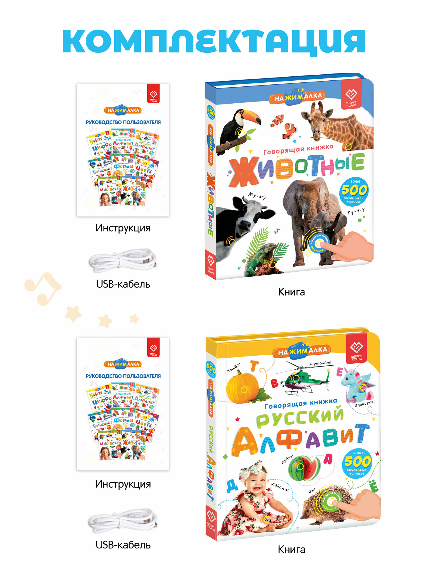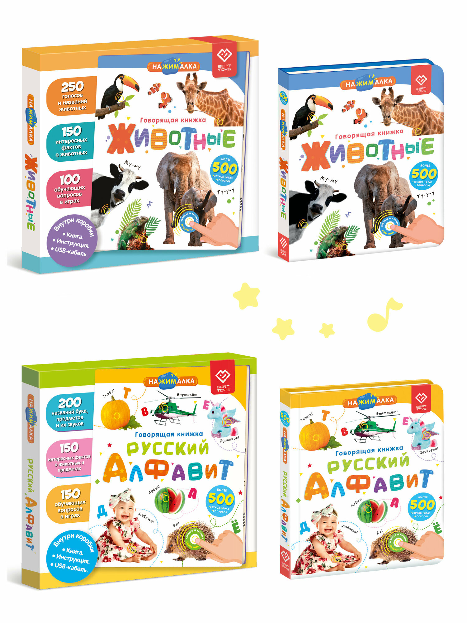 Купить Интерактивная музыкальная игрушка-книжка Набор Нажималка 2в1 "Животные + Русский алфавит", BertToys
