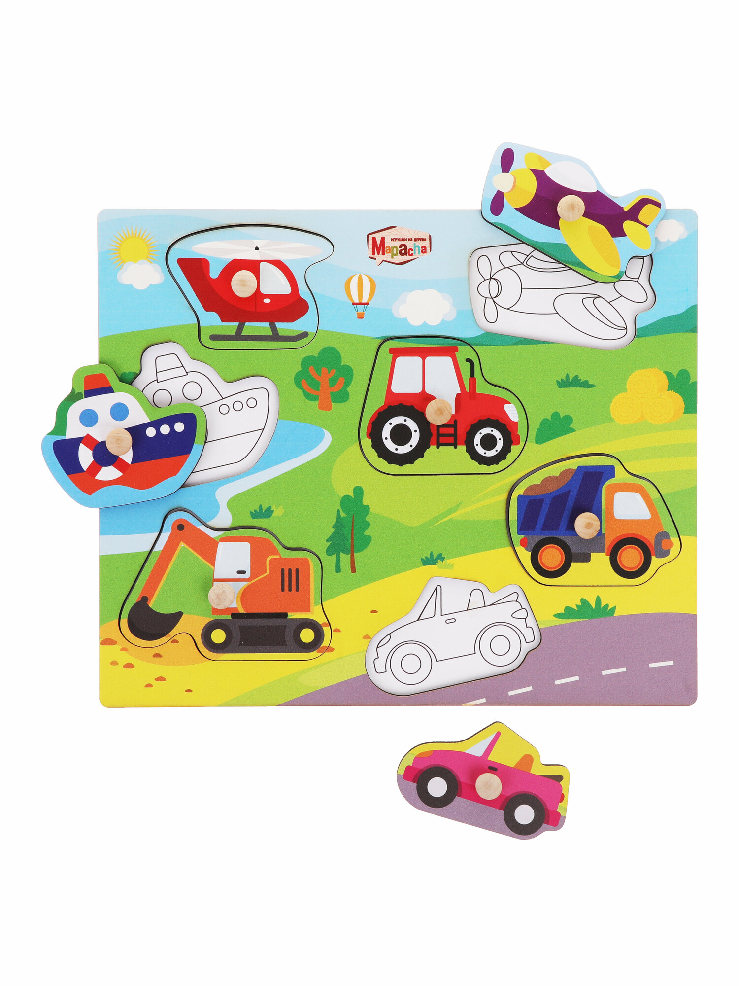 Купить Рамка вкладыш деревянная развивающая игра сортер для детей Изучаем виды транспорта