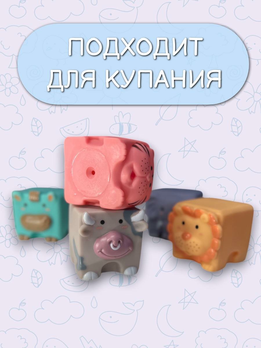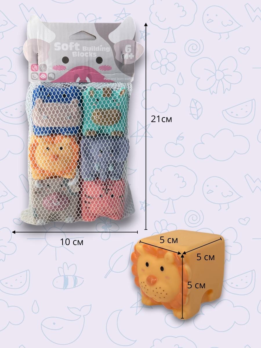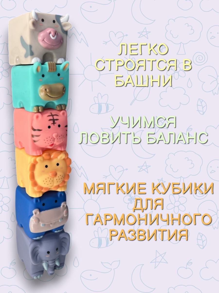 Развивающие детские мягкие кубики тактильные 6 животных. Набор для малышей 6+ интересное: