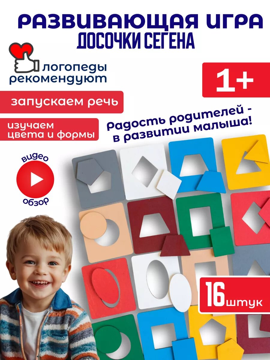 Досочки Сегена Timwood, дерево, от 1 до 3 лет, 16 элементов фигуры и цвета интересное: