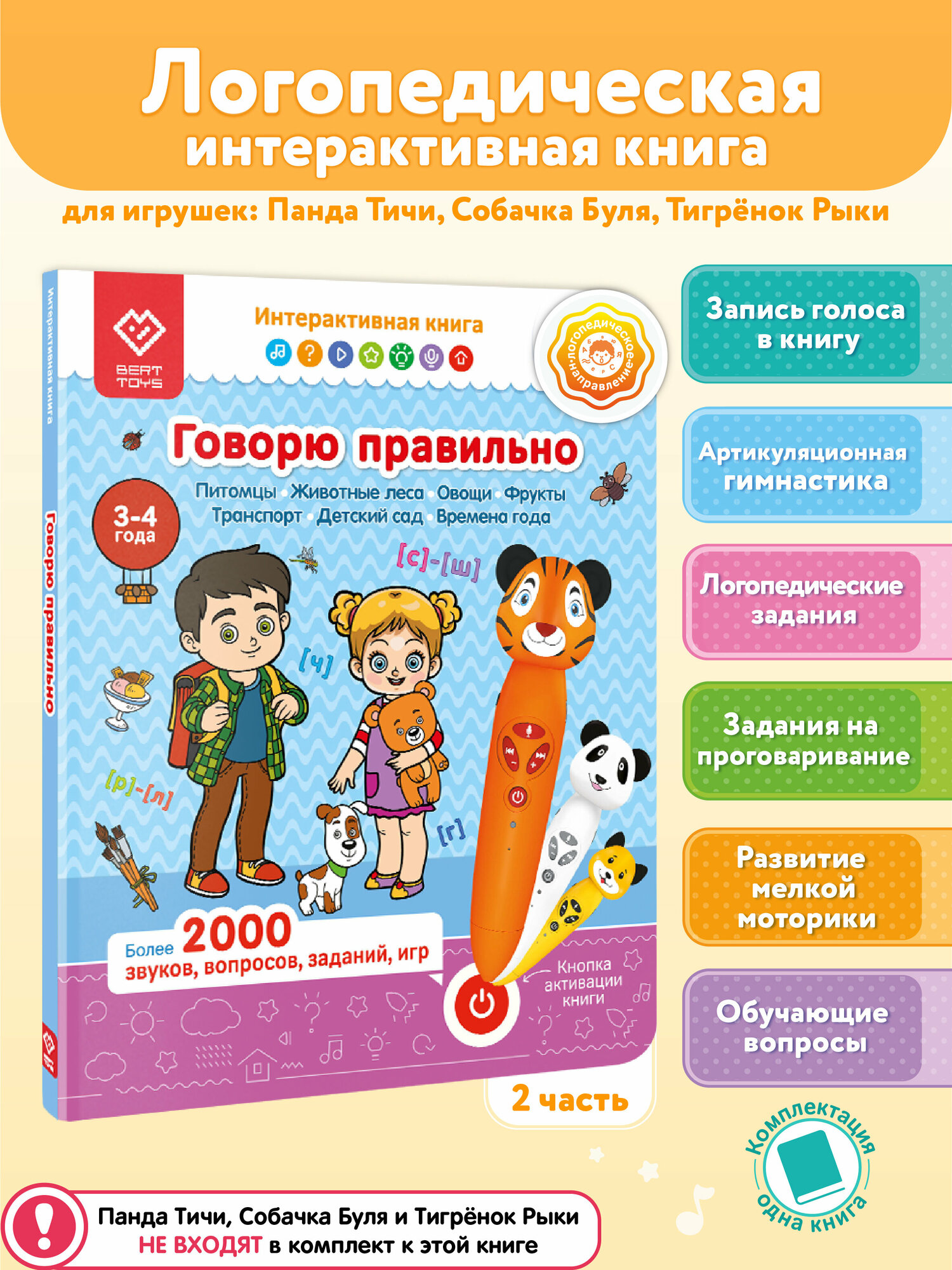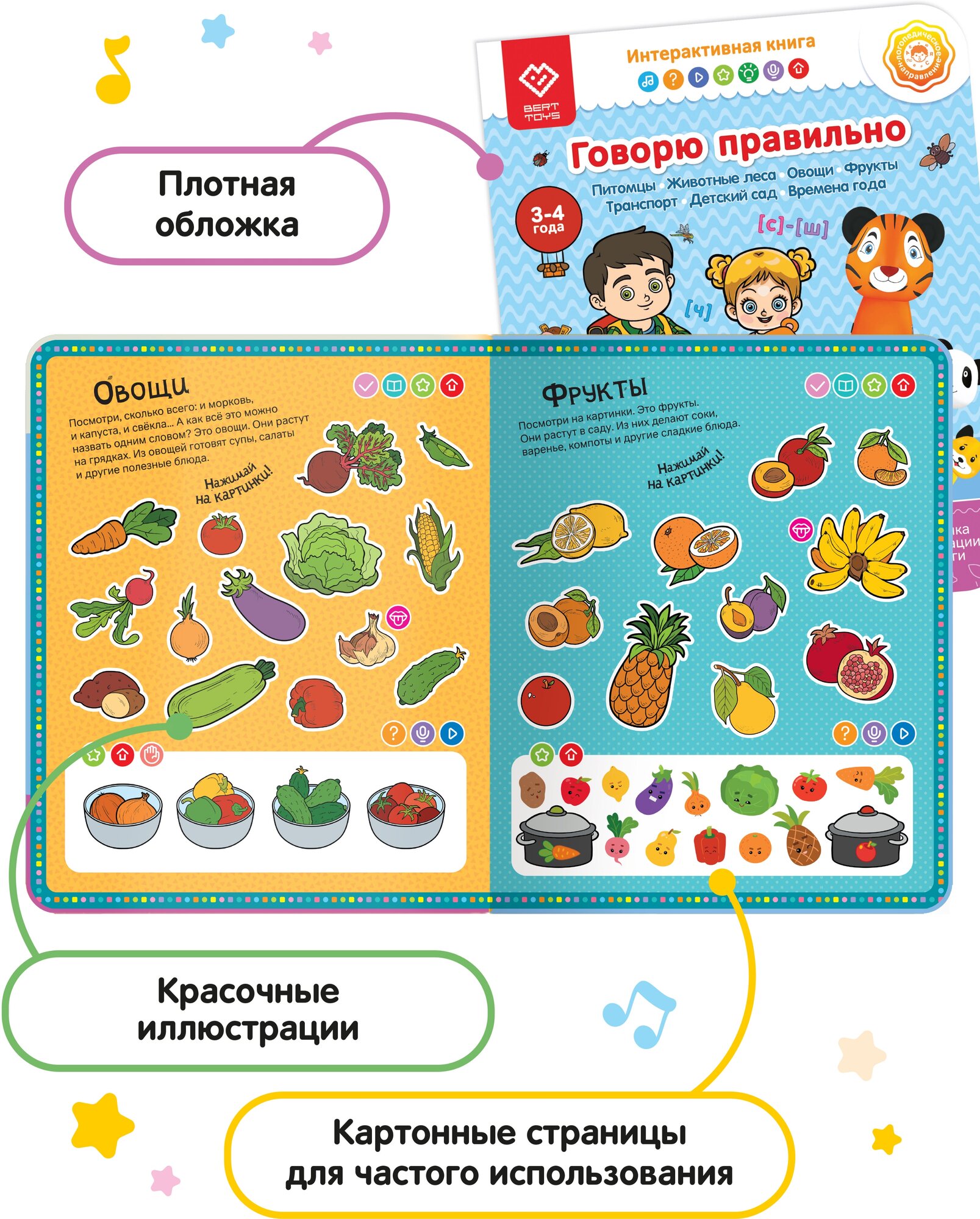 Логопедическая книжка игрушка BertToys "Говорю правильно" для детей 3-4 лет, Часть 1