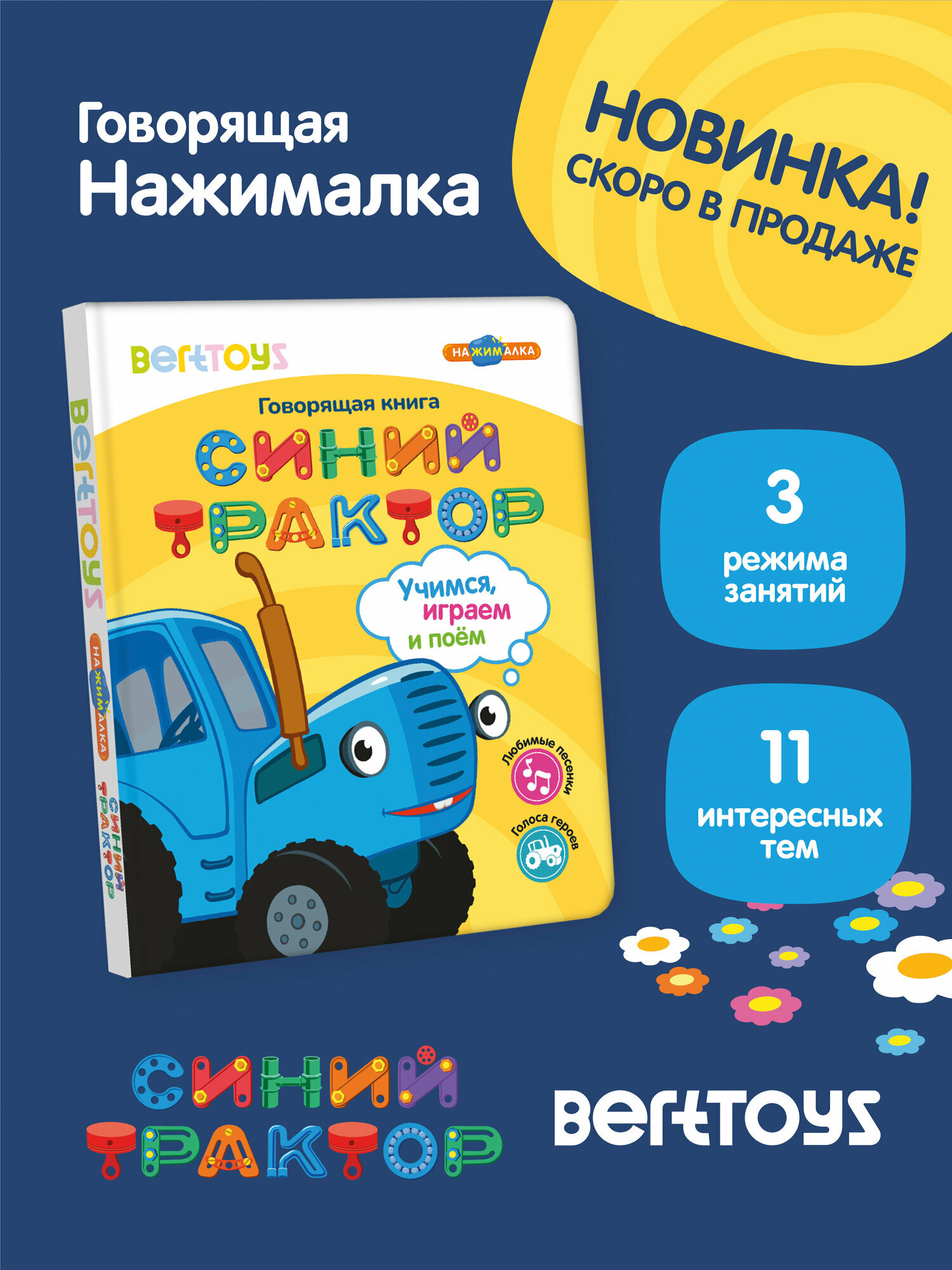 Интерактивная музыкальная игрушка-книжка Нажималка - Синий трактор, BertToys. Для мальчиков, девочек