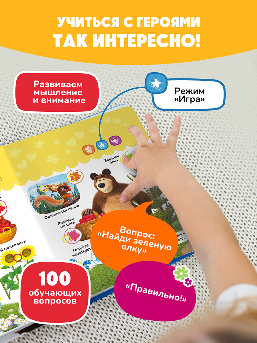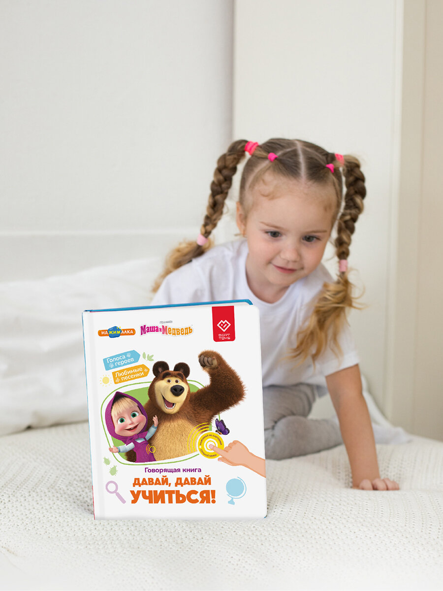 Купить Интерактивная развивающая игрушка-книжка Нажималка - Маша и Медведь, BertToys. Для мальчиков, девочек