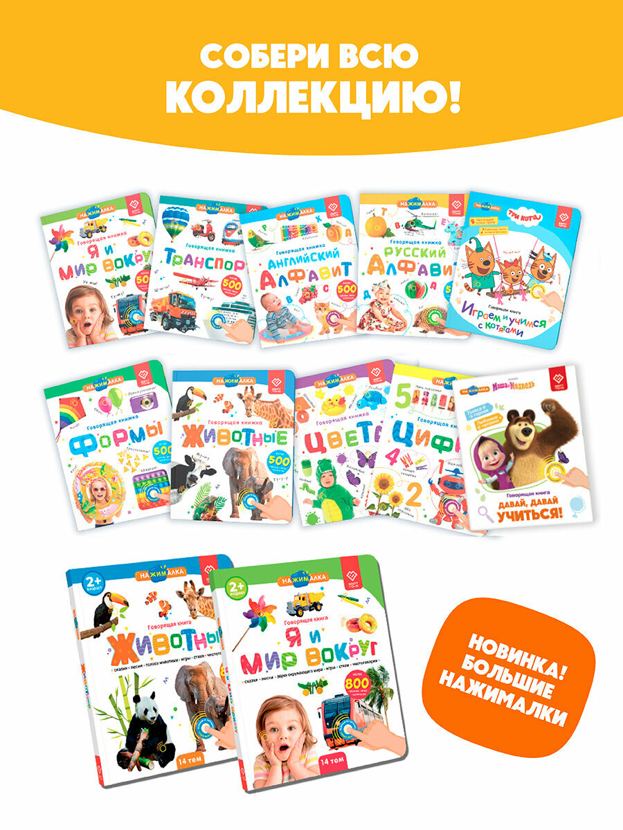 Интерактивная музыкальная говорящая игрушка-книжка Большая Нажималка - Животные, BertToys. Для мальчиков, девочек