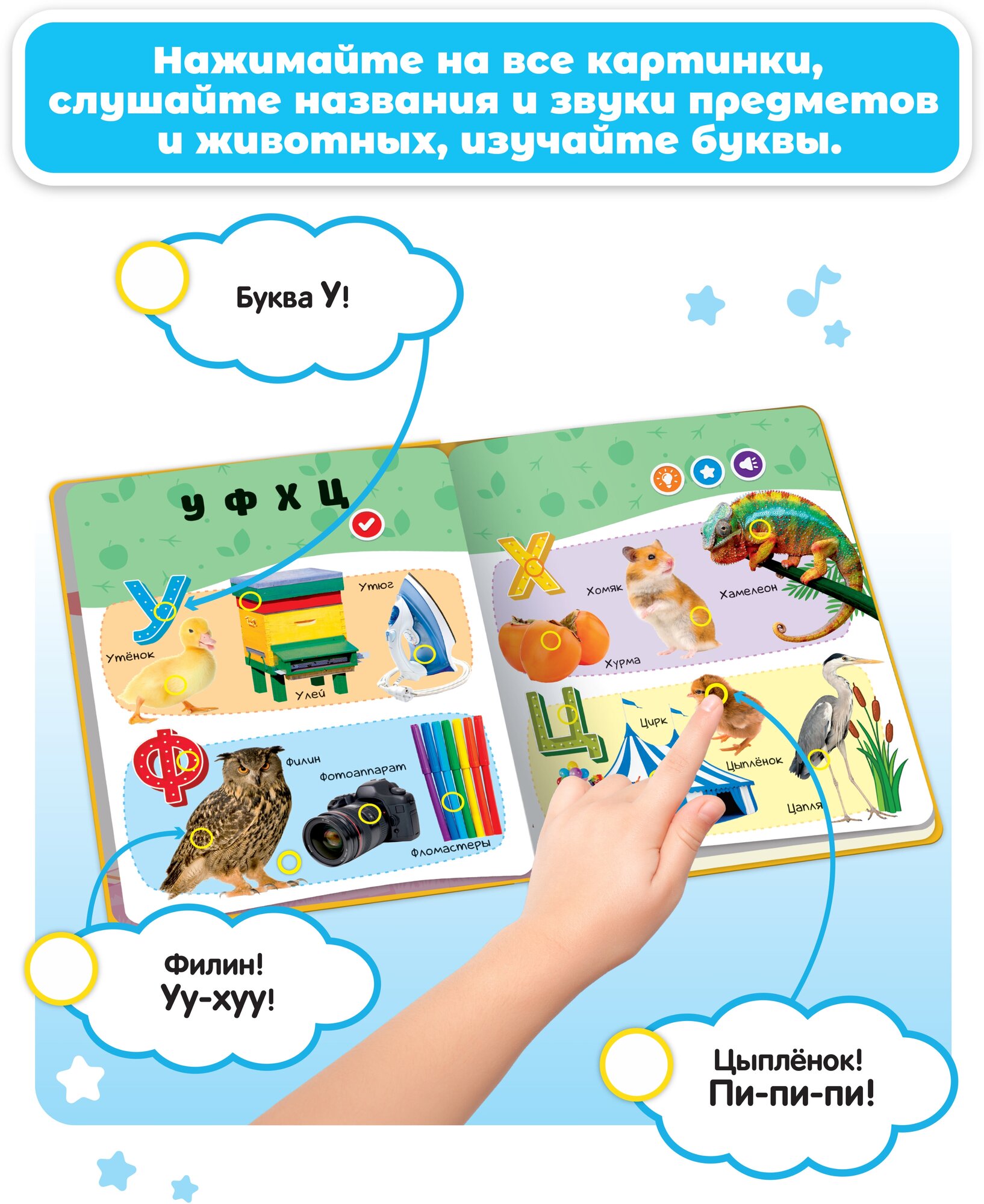 Интерактивная музыкальная игрушка-книжка Нажималка - Русский Алфавит, BertToys. Для мальчиков, девочек интересное: