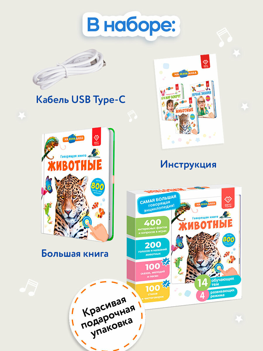 Купить Интерактивная музыкальная говорящая игрушка-книжка Большая Нажималка - Животные, BertToys. Для мальчиков, девочек