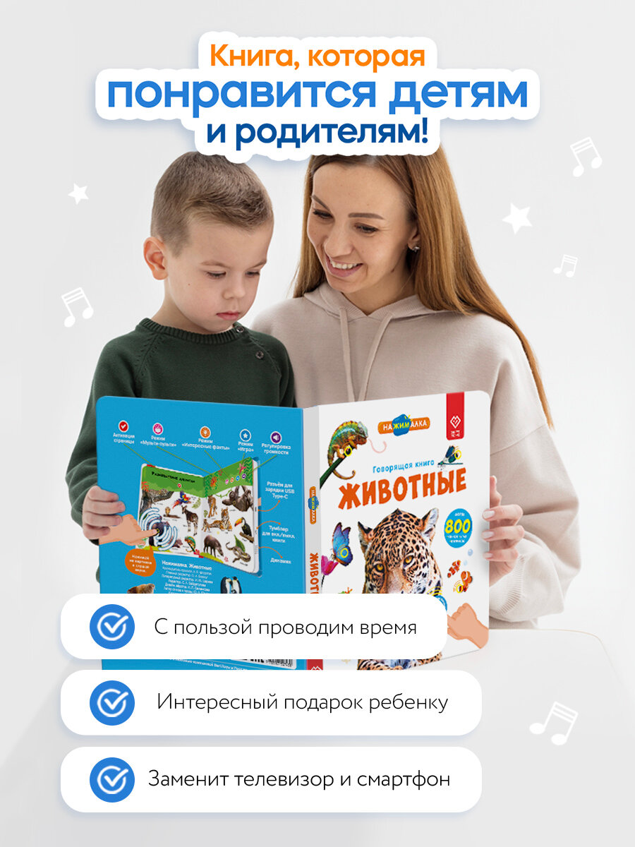 Интерактивная музыкальная говорящая книга для детей Нажималка – "Животные" от BertToys