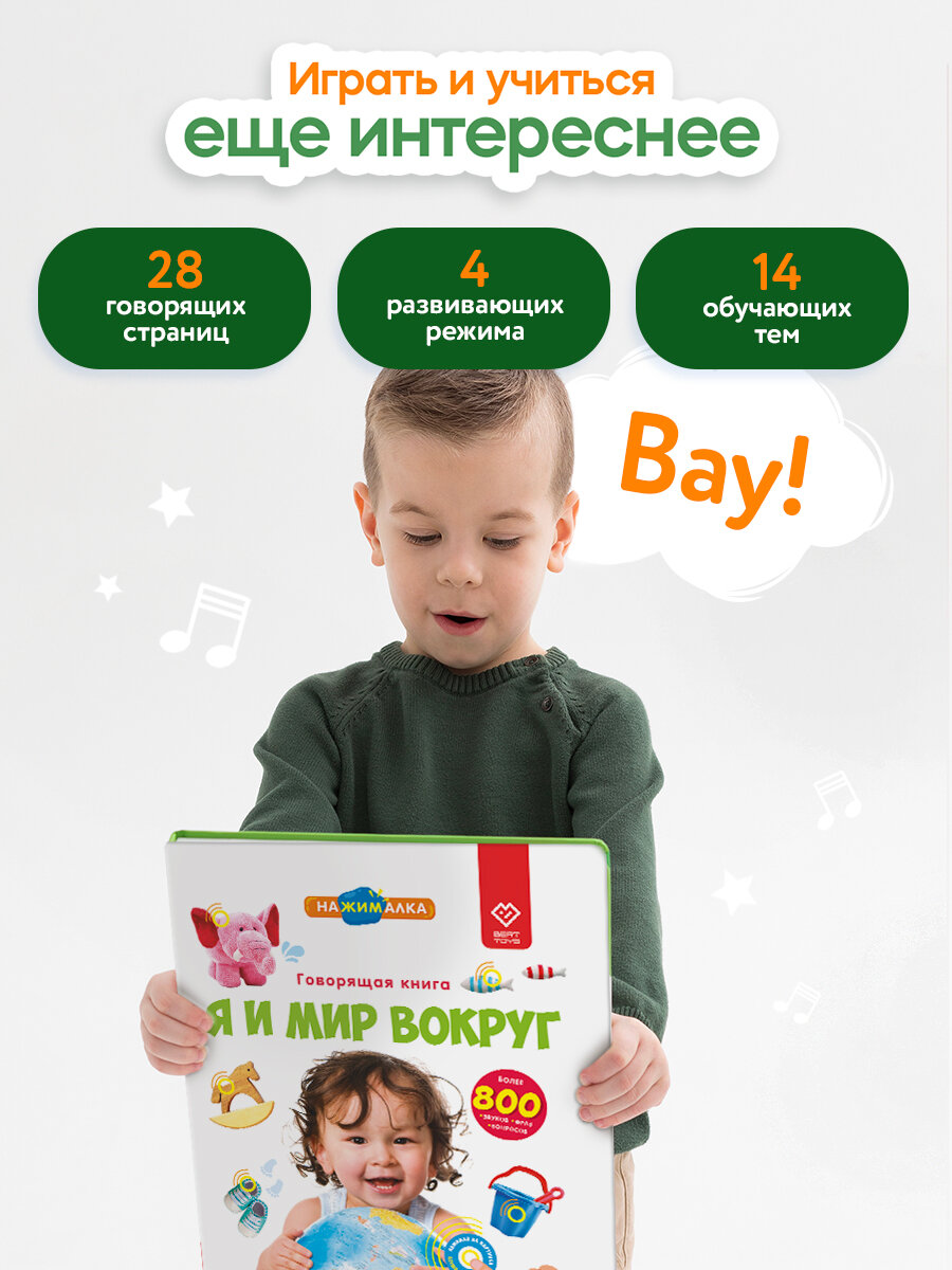 Интерактивная музыкальная игрушка-книжка Большая Нажималка - Я и Мир Вокруг, BertToys. Для мальчиков, девочек интересное: