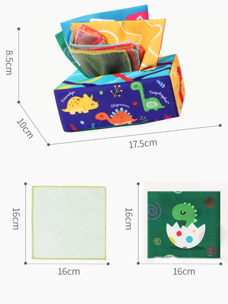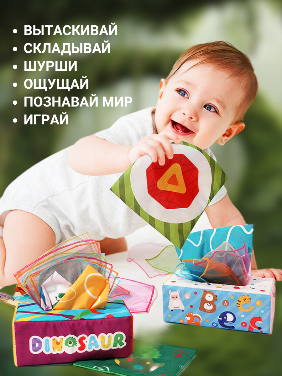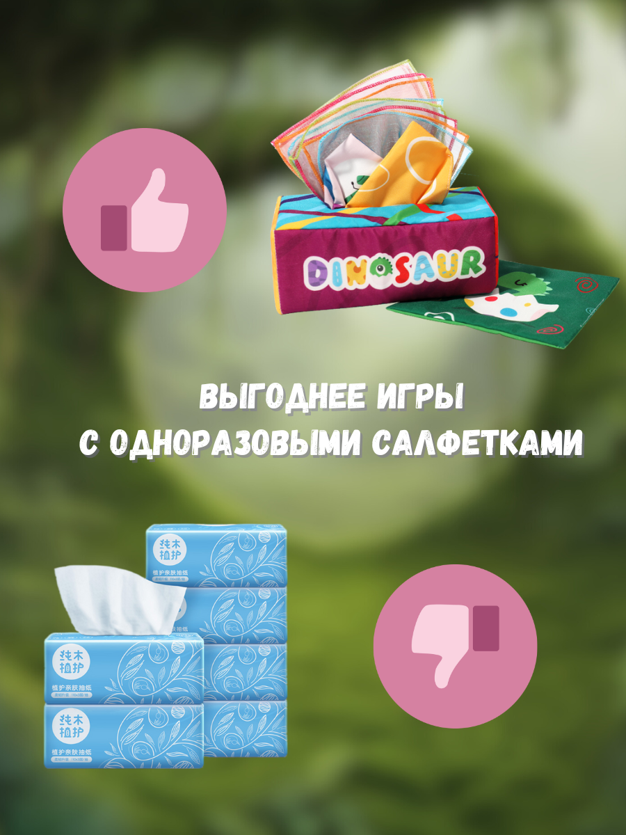 Тактильный сортер Монтессори, развивающая мягкая игрушка салфетница для детей Динозавр
