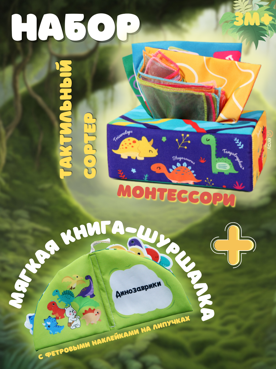 Купить Набор Дино Тактильный сортер Монтессори + книжка шуршалка Динозаврики