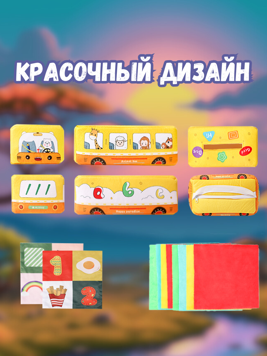 СохранитьНабор Автобус со зверятами Тактильный Сортер Монтессори + книжка шуршалка, игрушка, подарочный комплект интересное: