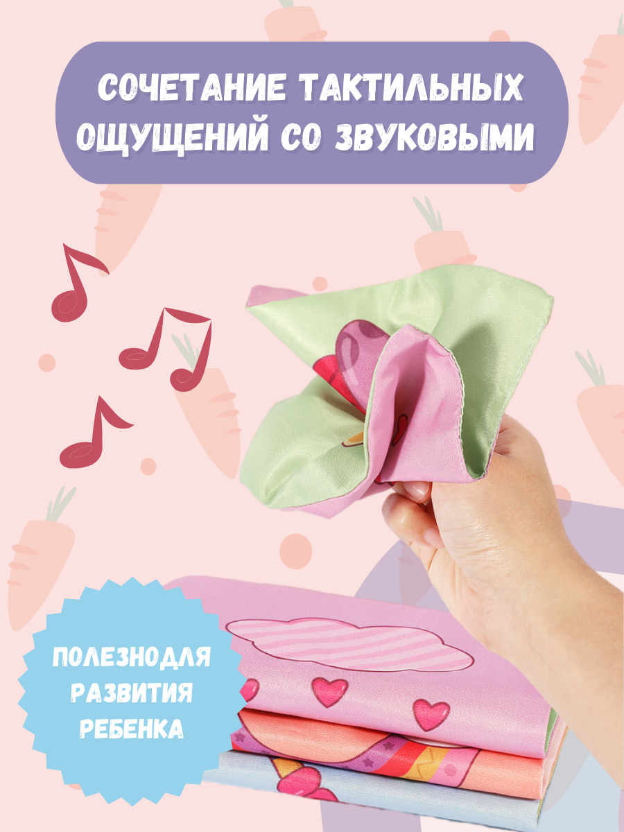 | Дополнительная информация | 10 прозрачных цветных салфеток, 3 шуршащие тканевые салфетки, 1 книжка шуршалка, 6 фетровых многоразовых наклеек |