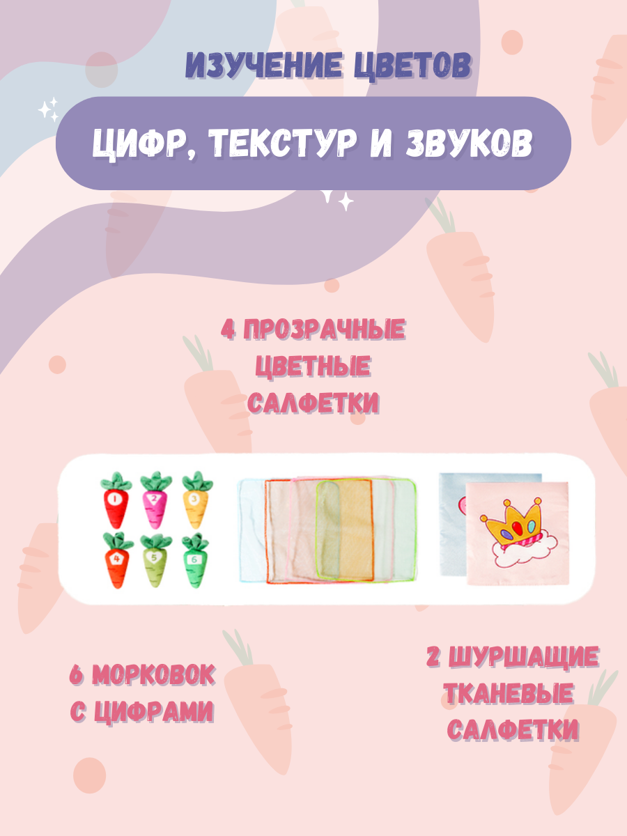 СохранитьТактильный сортер Монтессори, развивающая мягкая игрушка салфетница для детей Морковка интересное:
