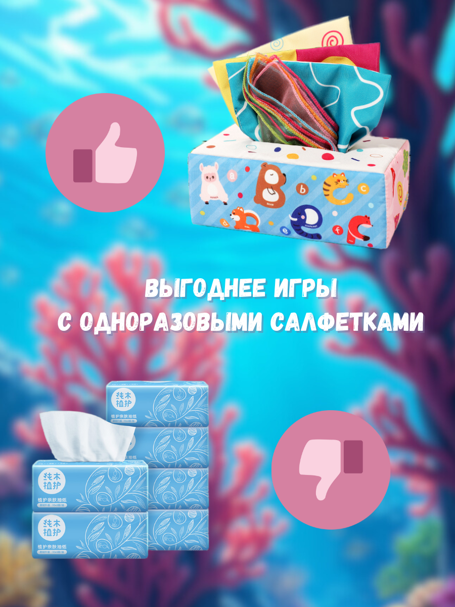 Тактильный сортер Монтессори, развивающая мягкая игрушка салфетница для детей