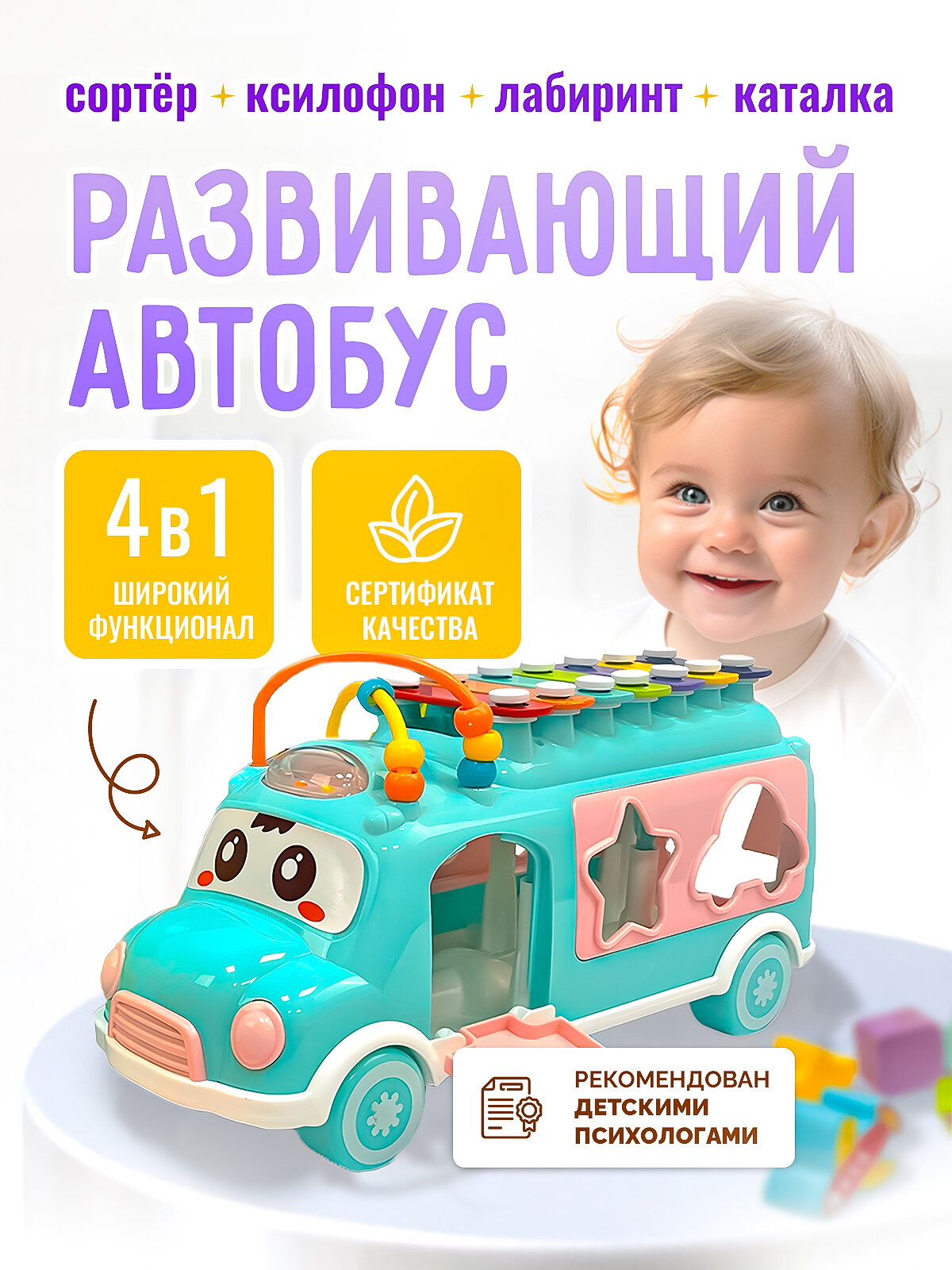 Ниже Вы можете прочитать отзывы на Развивающий сортер Автобус с ксилофоном, голубой, ознакомится с подробными характеристиками, посмотреть интересные обзоры и фотографии на Развивающий сортер Автобус с ксилофоном, голубой.