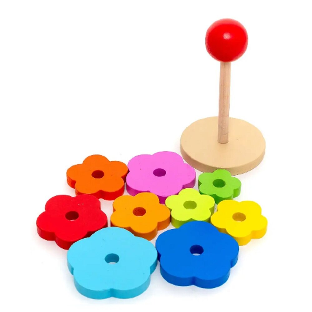 Купить Развивающая игрушка детская деревянная пирамидка Цветок для малышей, 9 колечек