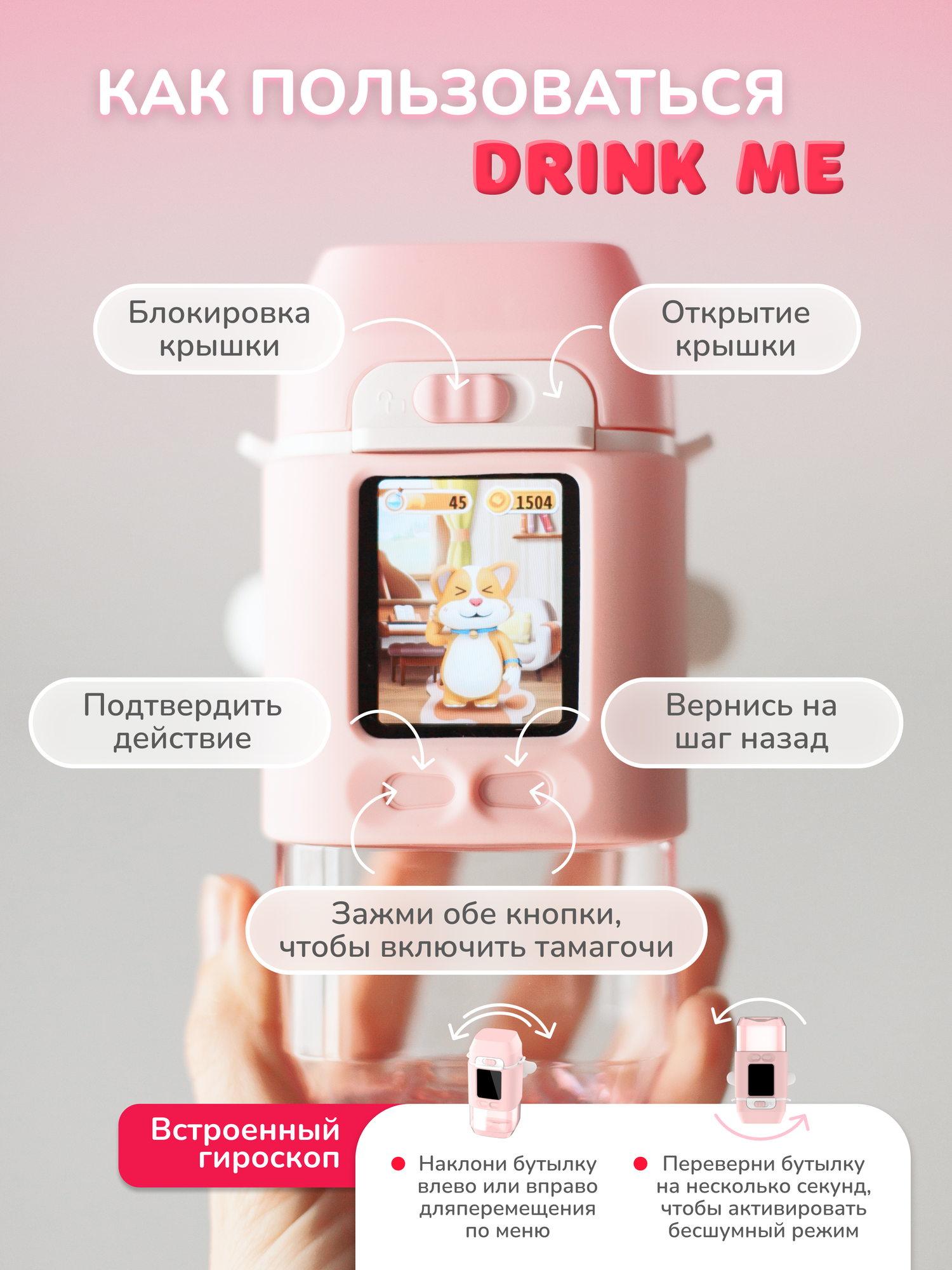 Умная бутылочка для воды с тамагочи на русском языке DrinkMe интересное: