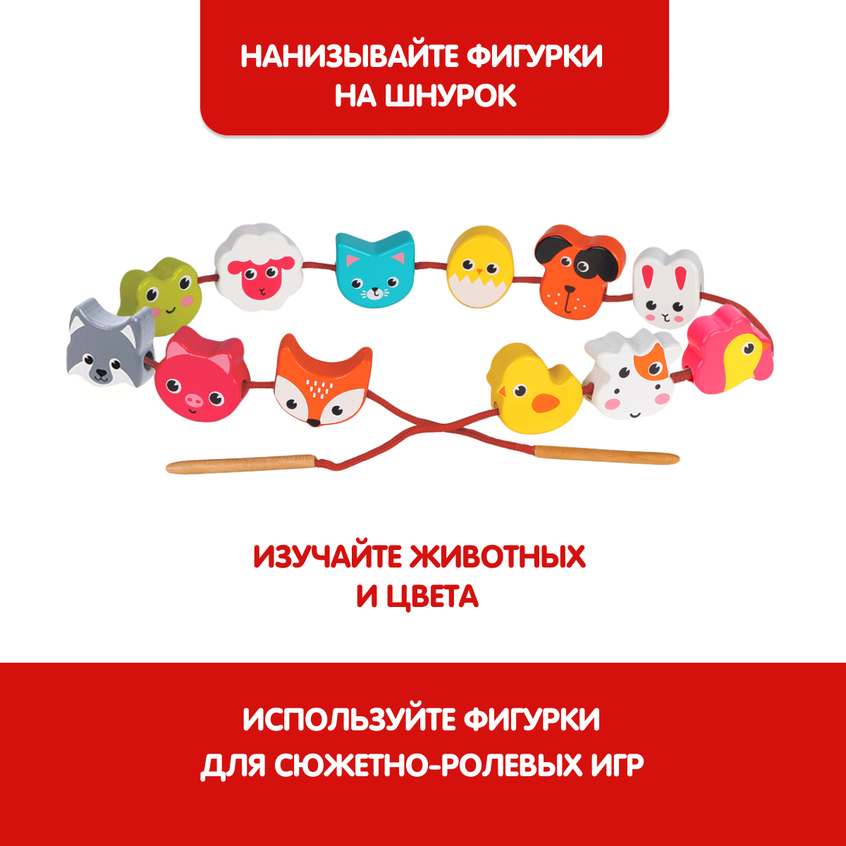 Игрушка Mapacha "Животные", шнуровка деревянная, 12 элементов, 3-4см интересное: