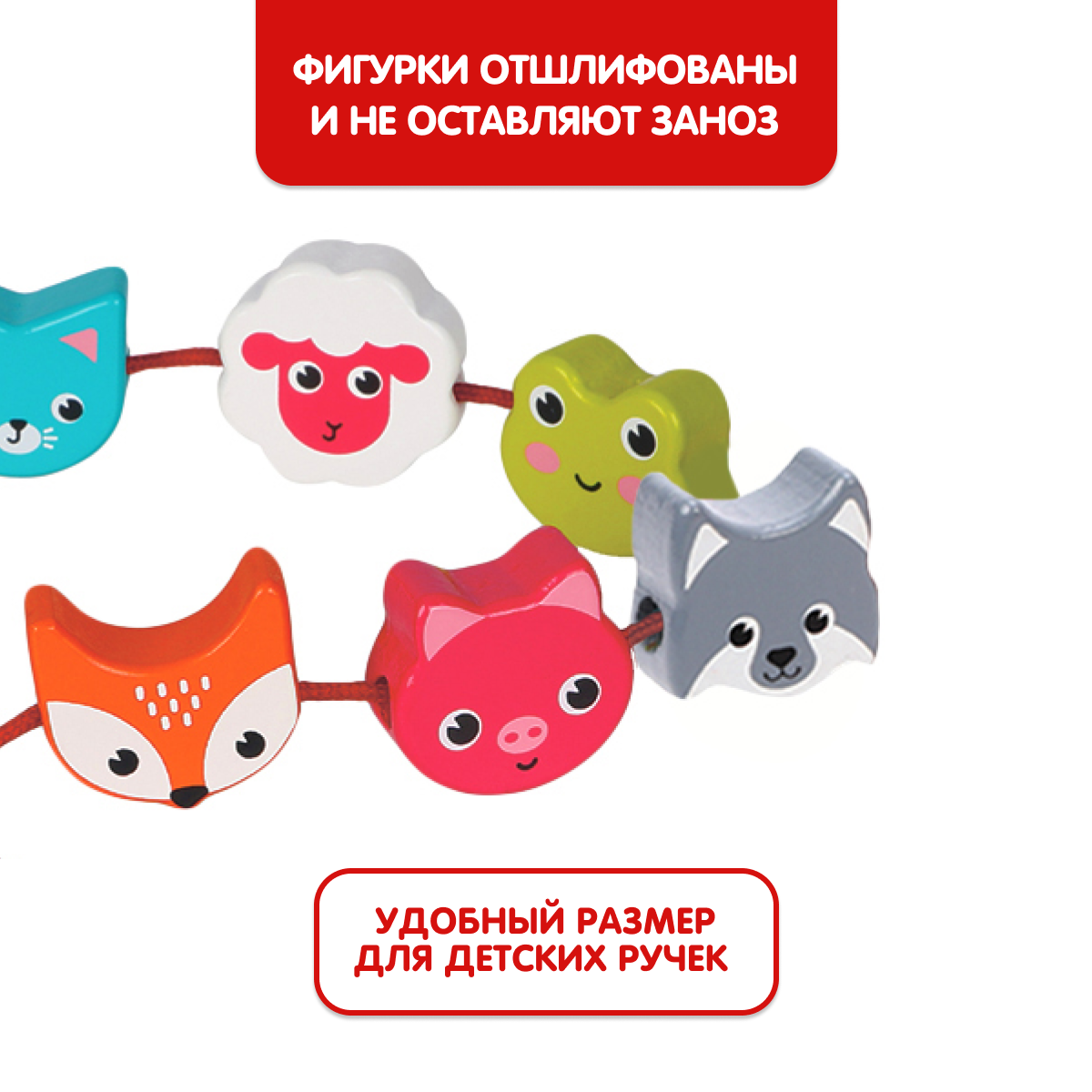 Купить Игрушка Mapacha "Животные", шнуровка деревянная, 12 элементов, 3-4см