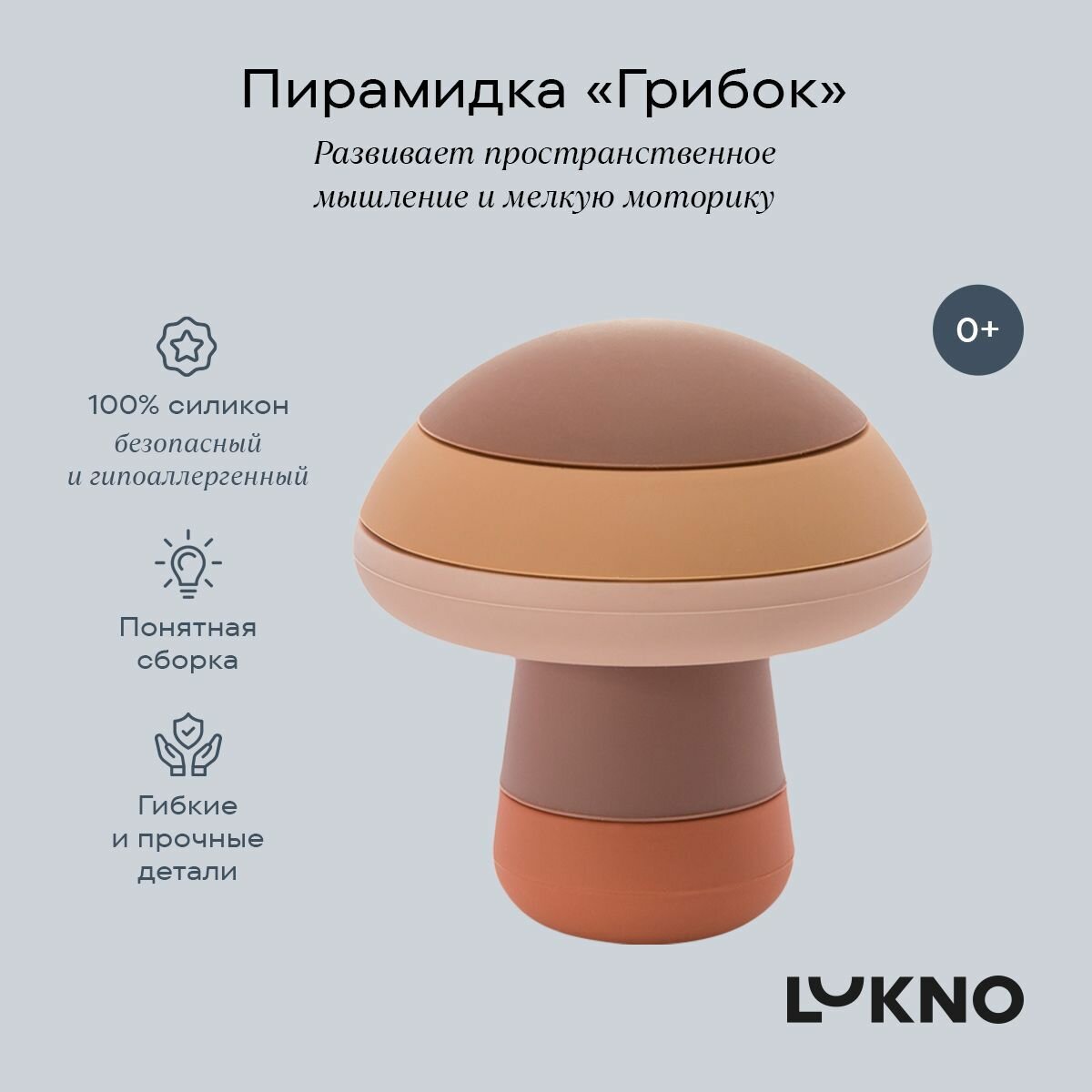 Пирамидка детская игрушка развивающая Грибок LUKNO интересное: