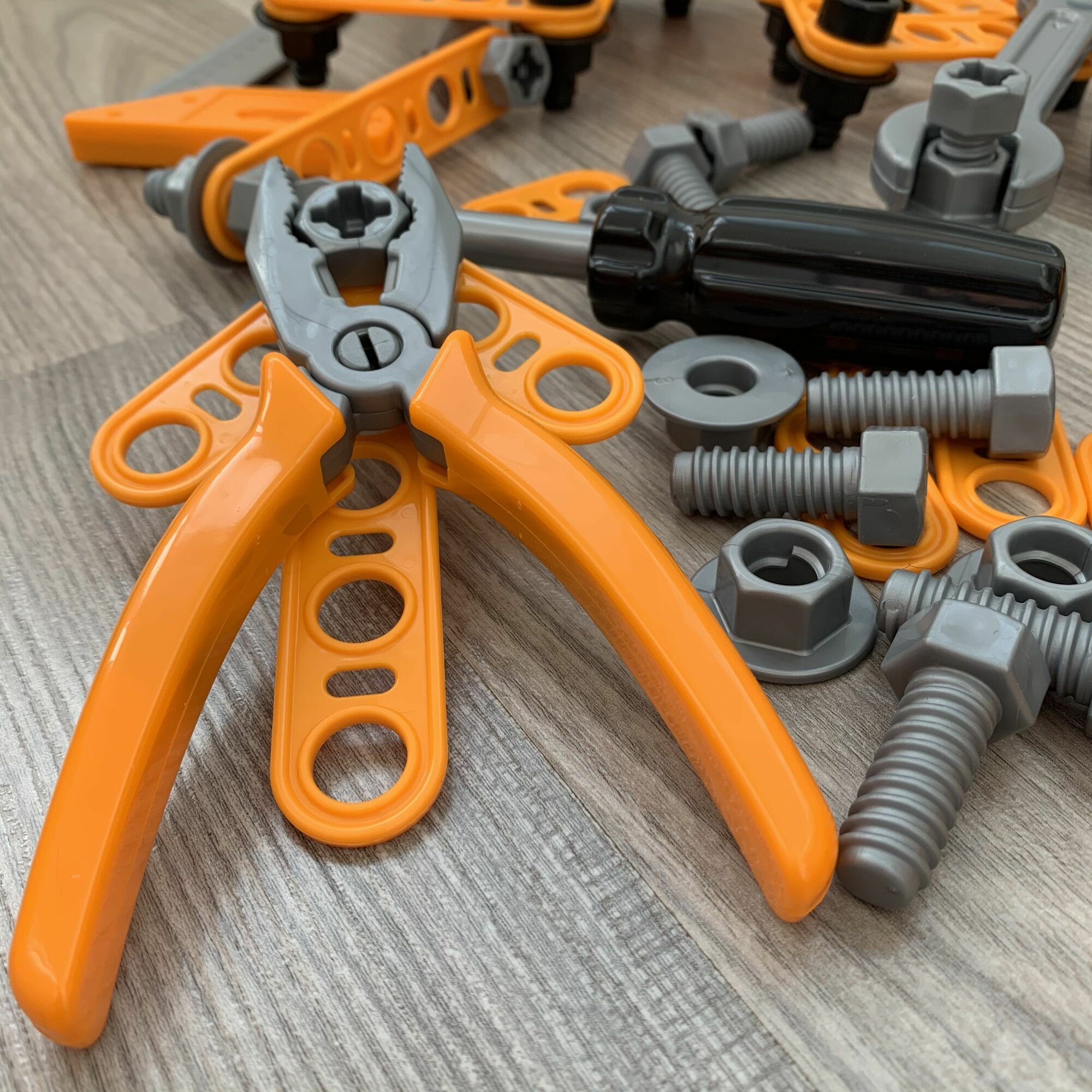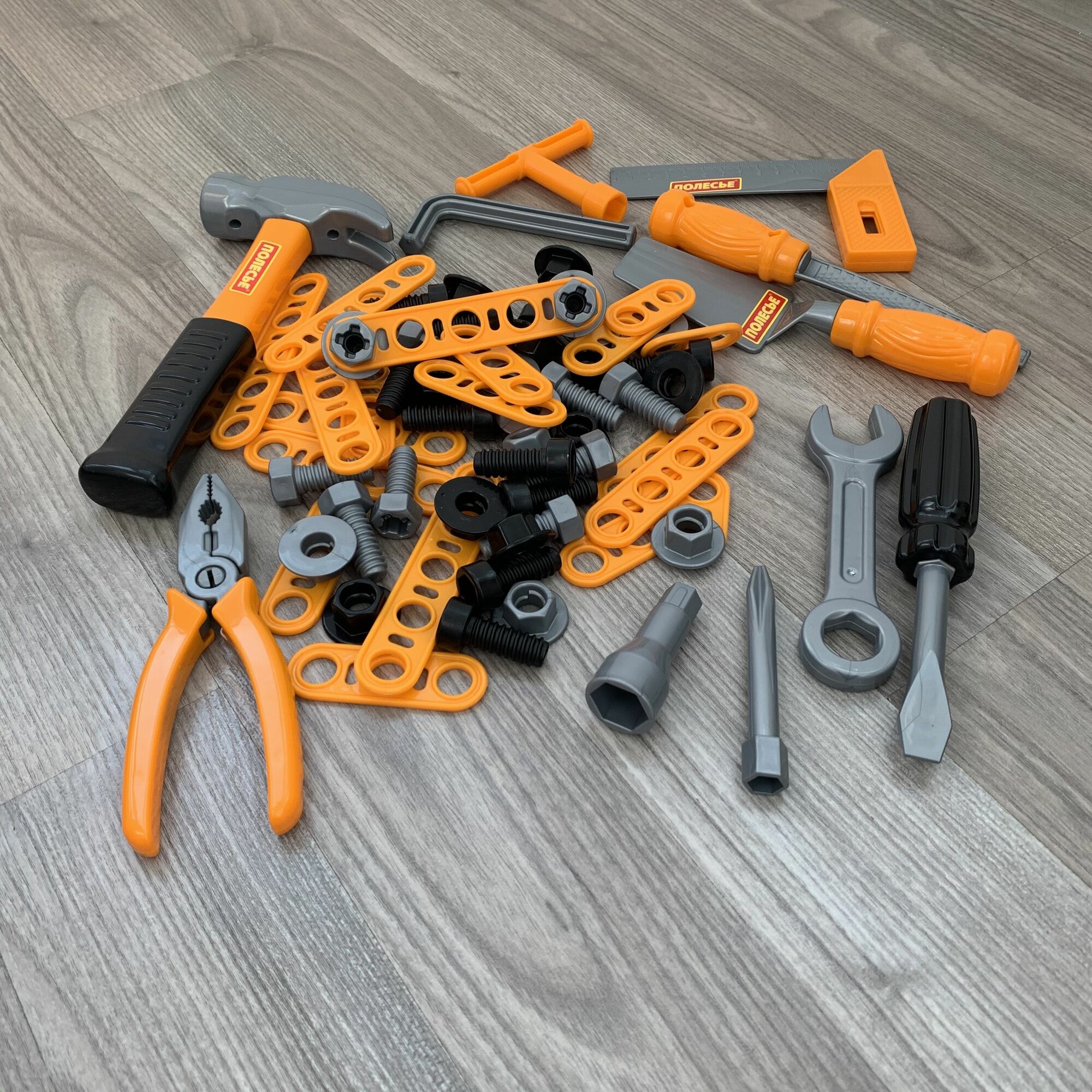 Купить Развивающий набор детских инструментов по конструированию и развитию моторики с гайками и винтами / Полесье - оранжевый