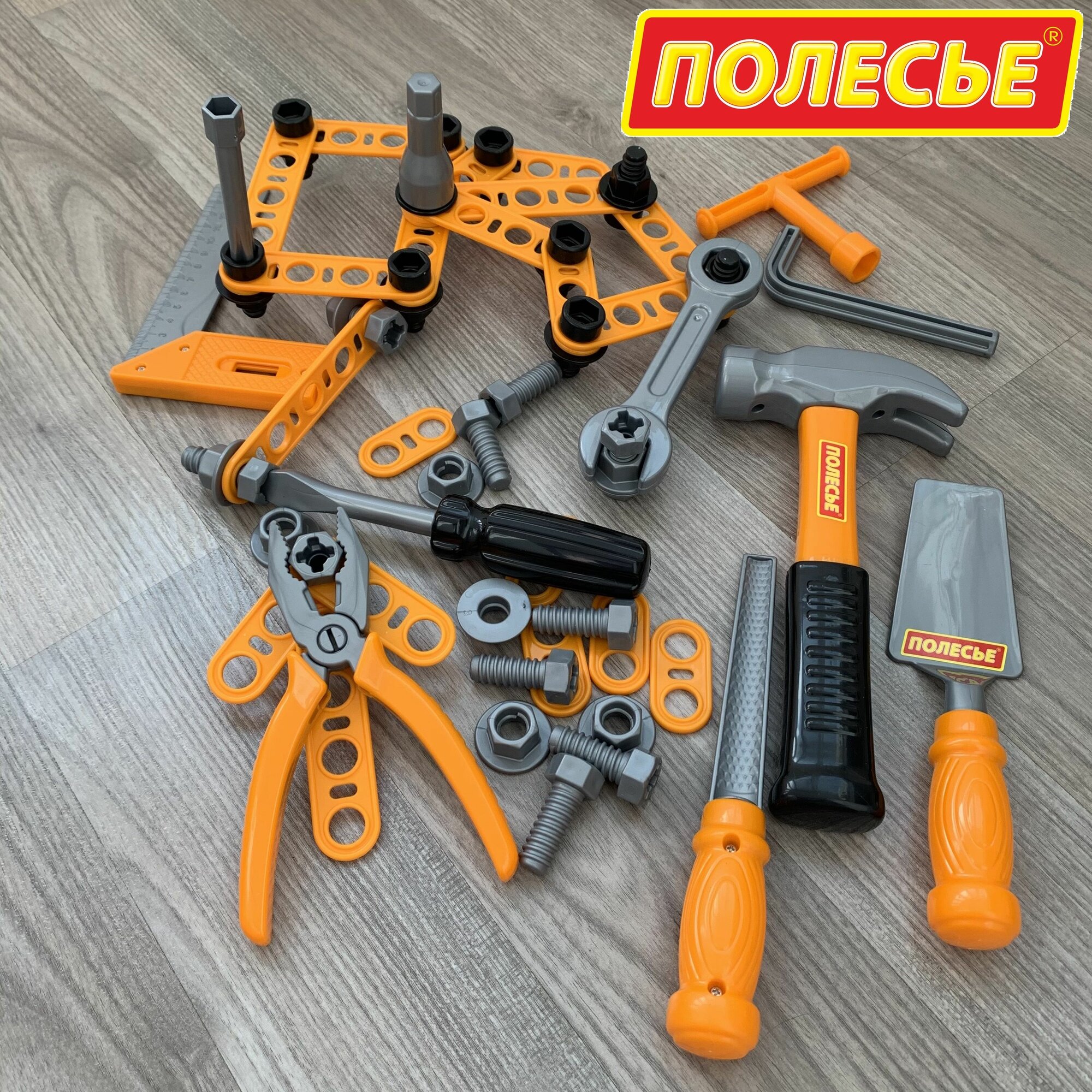 Развивающий набор детских инструментов по конструированию и развитию моторики с гайками и винтами / Полесье - оранжевый интересное: