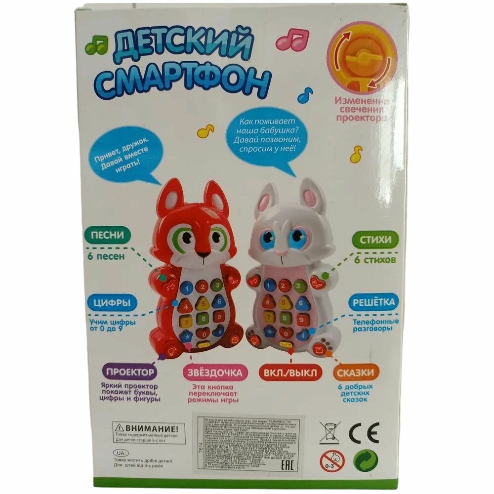 Купить Игрушка детский музыкальный телефон проектор 9 х 16 см, песни и сказки, учим цифры, фигуры и буквы