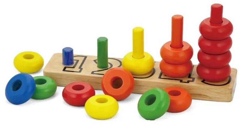 Развивающие игрушки из дерева Viga Toys, Деревянный сортер-пирамидка 'Разложи по номерам' 58474 интересное: