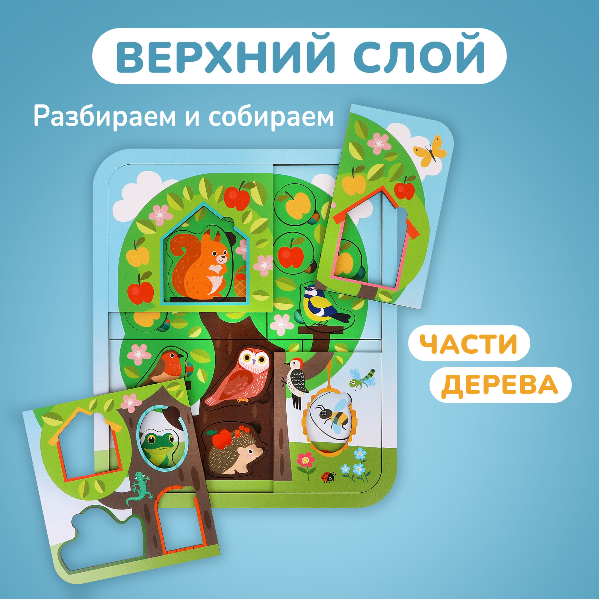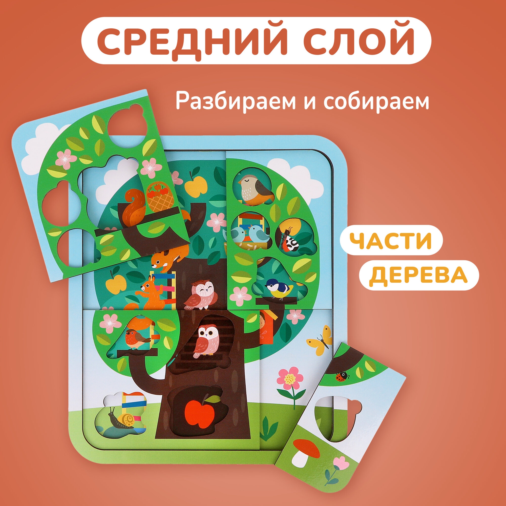 Развивающая игрушка Mapacha "Удивительное дерево", многослойный деревянный пазл, 28 деталей, для детей от 3 лет интересное: