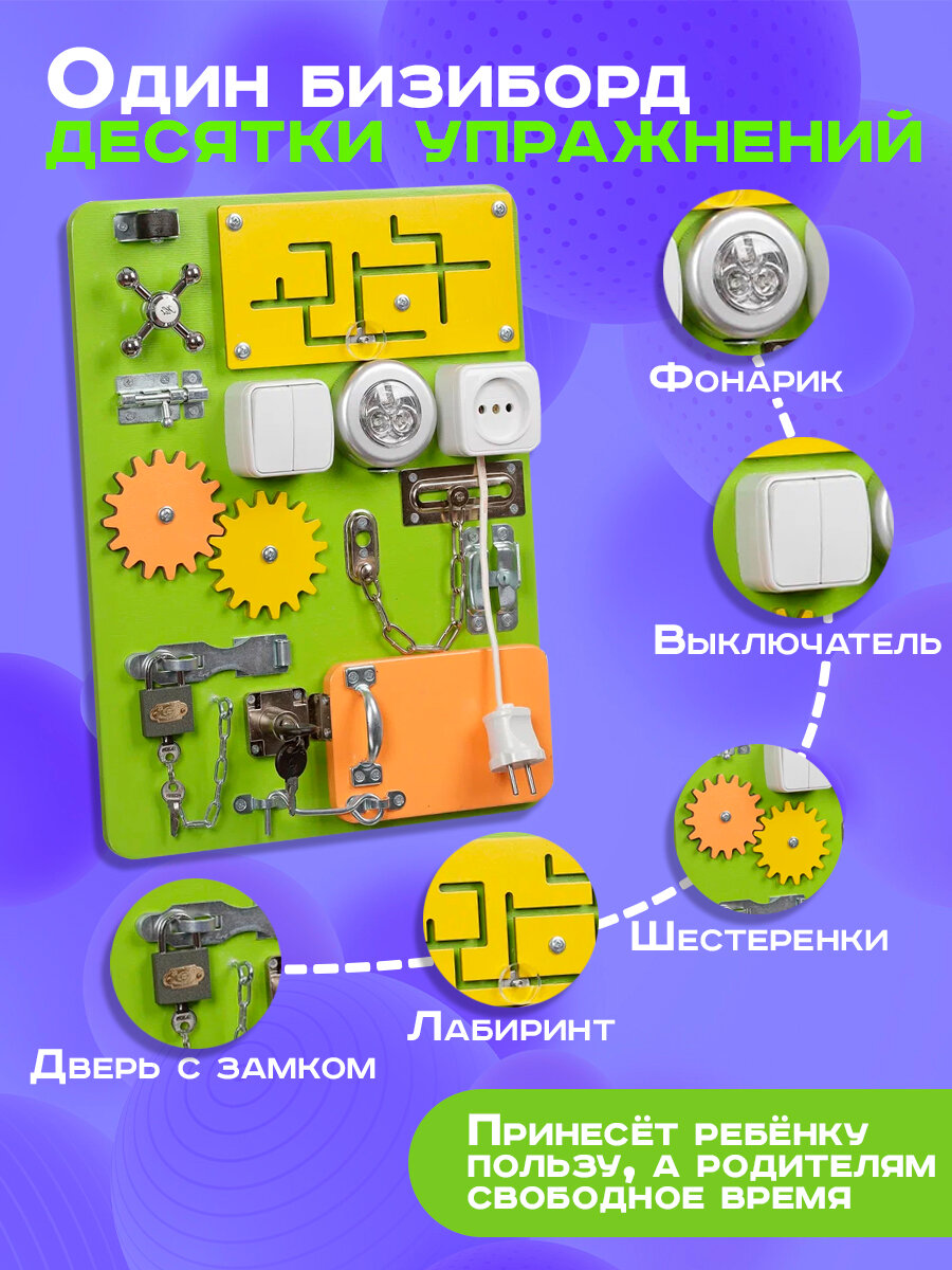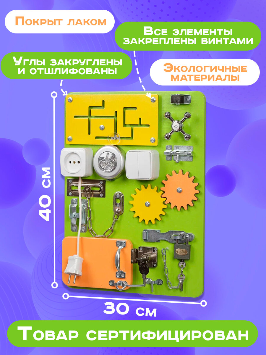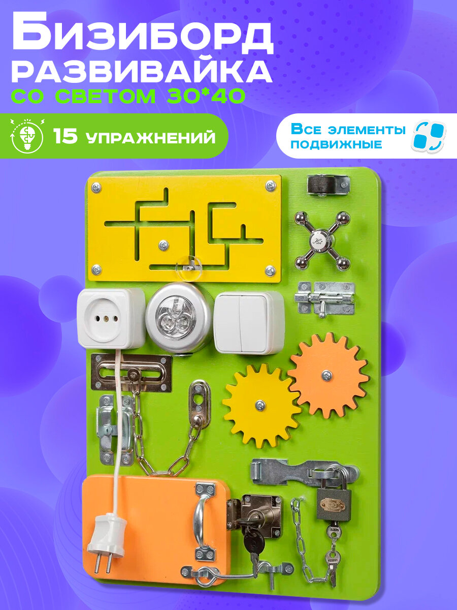 Бизиборд "Мастерская бизибордов Развивайка" Компакт 30х40 см со светом интересное: