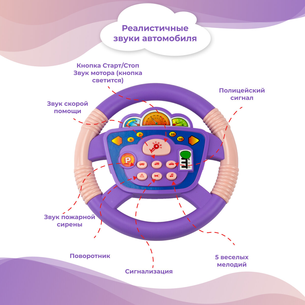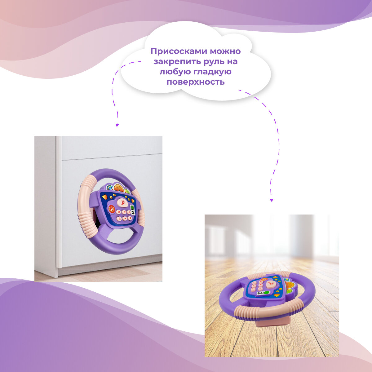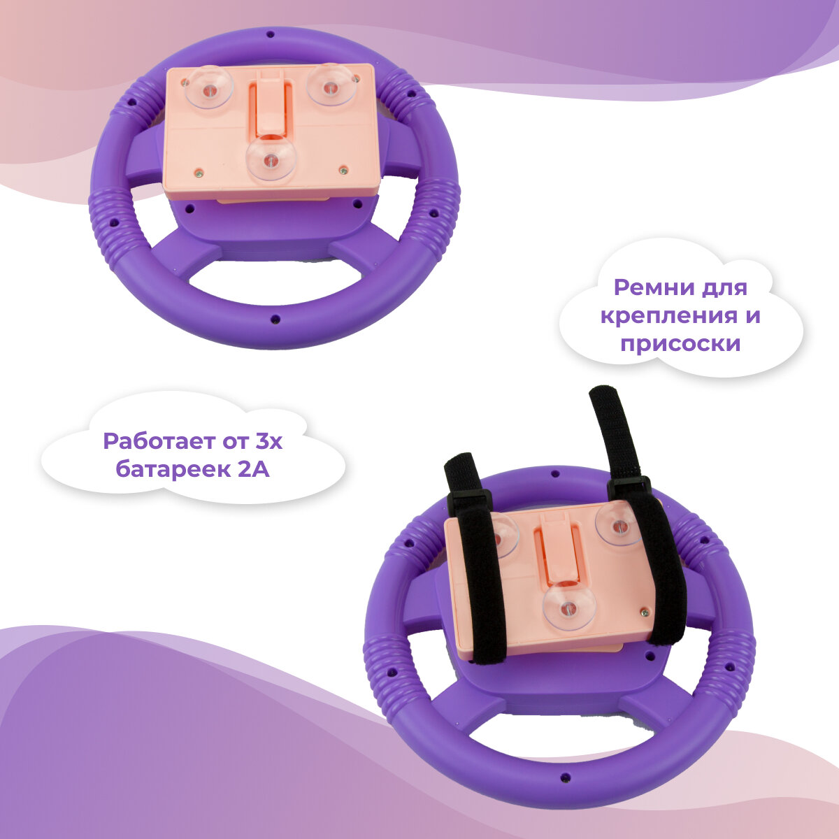 Купить Руль детский музыкальный на присоске/Игровой детский руль с креплением/Подвеска на кроватку, коляску, свет и звук